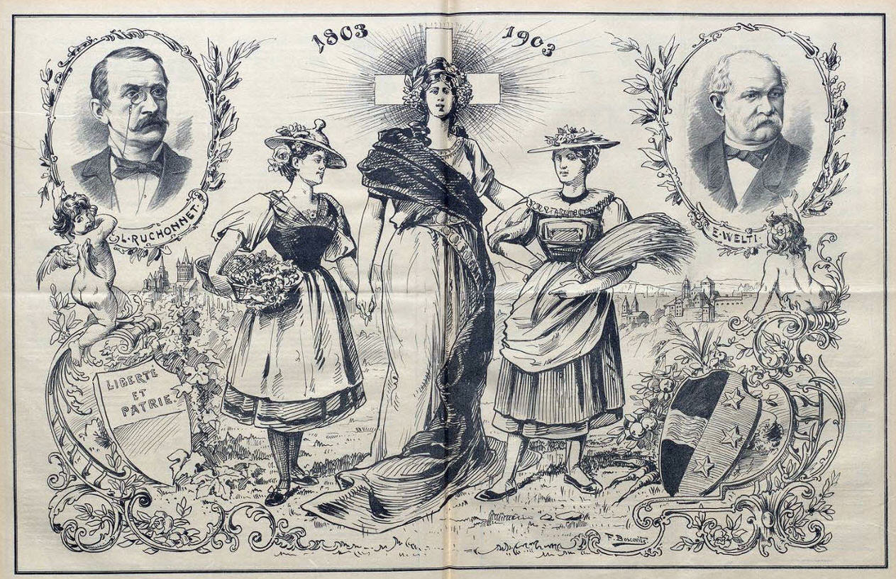 Ein Dreifuss |  Die idealen Gegenstücke |  Tessiner Centenarfeier |  Der eerste Rheindampfer in Basel |