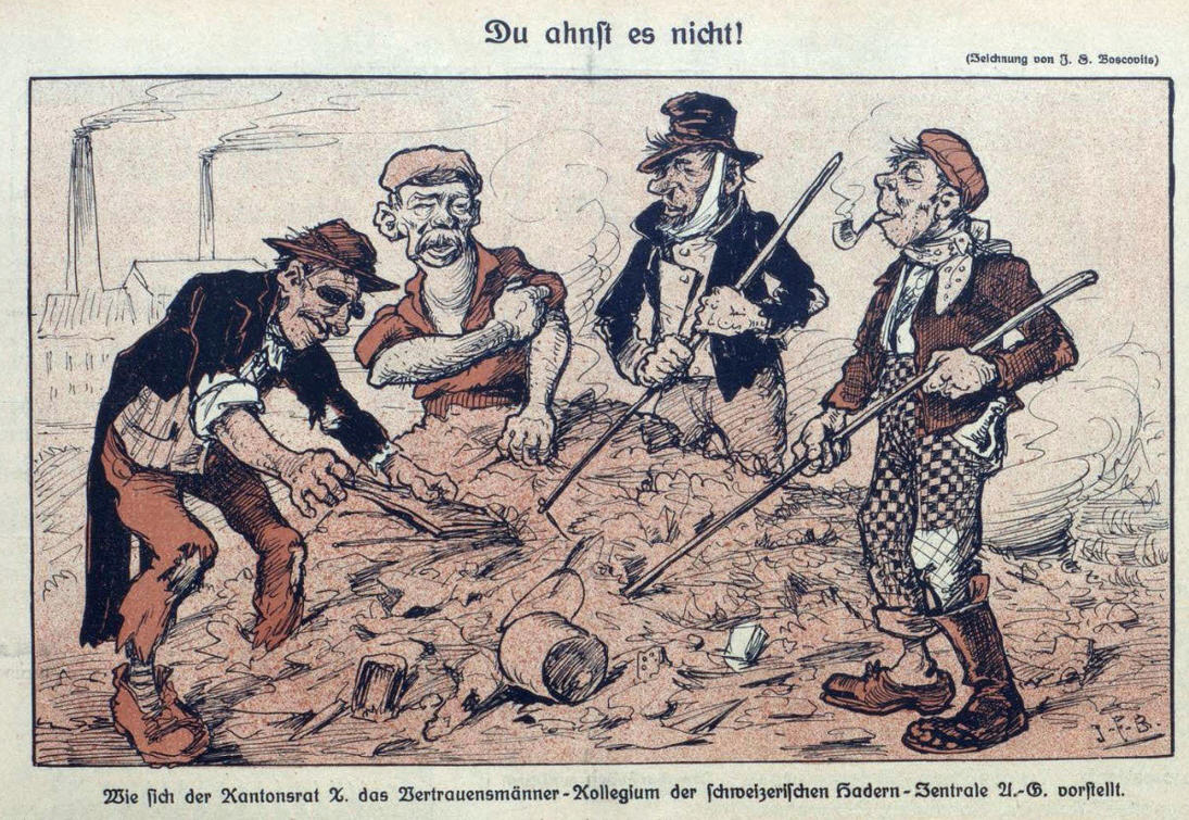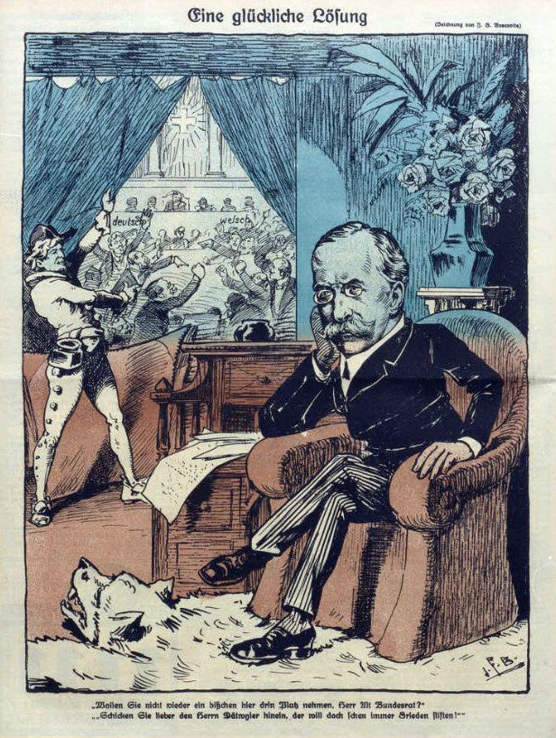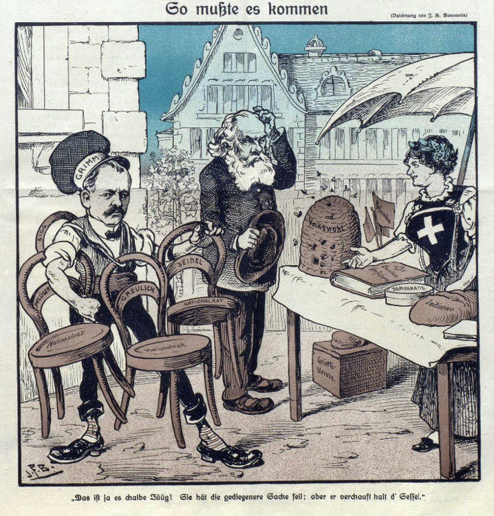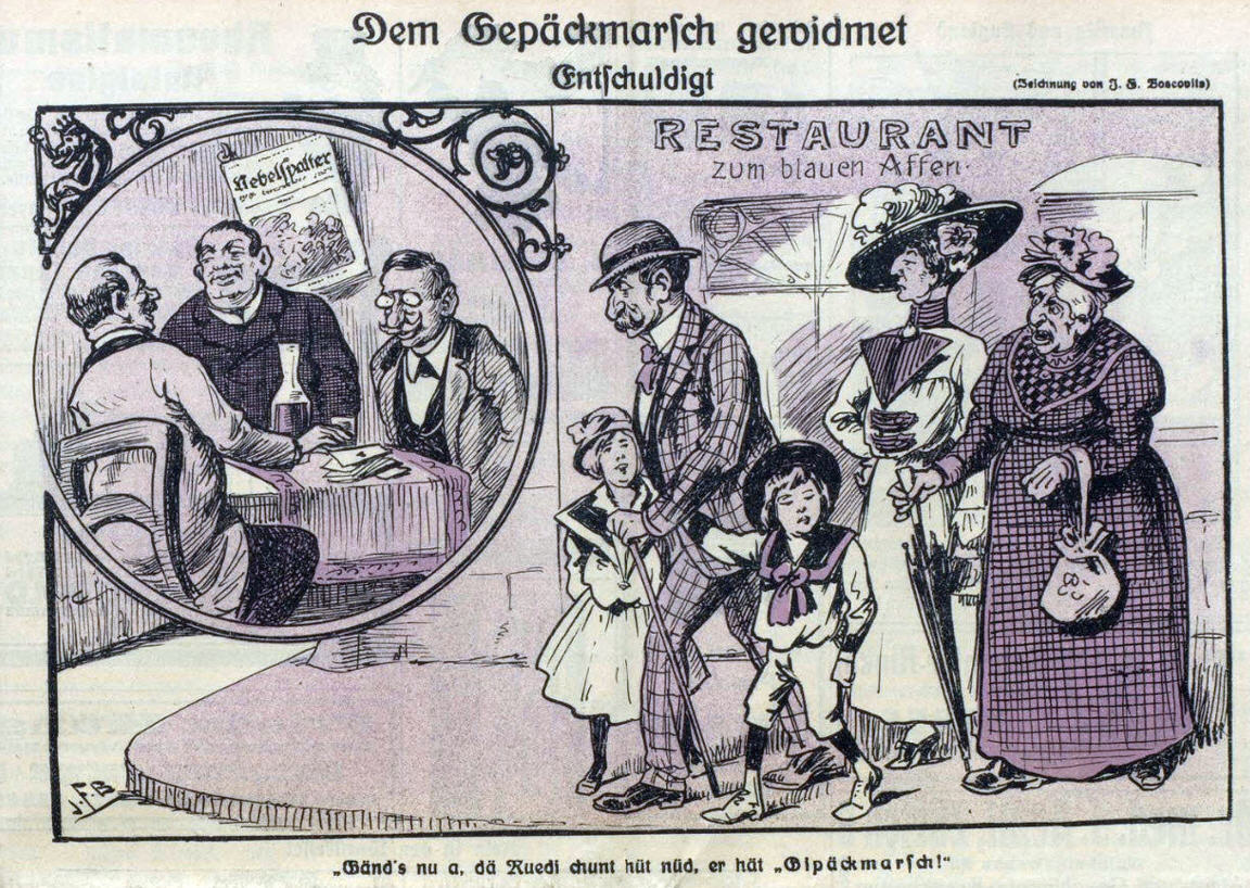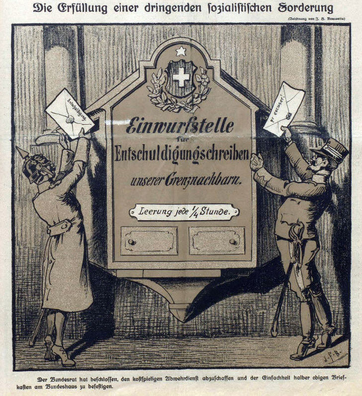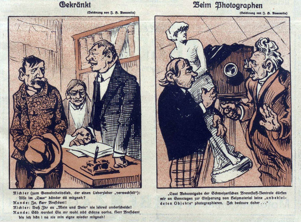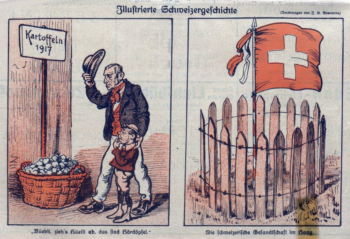 Aus der Galerie berühmter Eidgenossen - Robert Ferdinand Treytorrens de Loys |  Die Drei - Charles Naine, Ernest-Paul Graber und Robert Grimm |  Der Genfer Tribun Sigg droht - Jean Sigg |  Leithammel vor! |