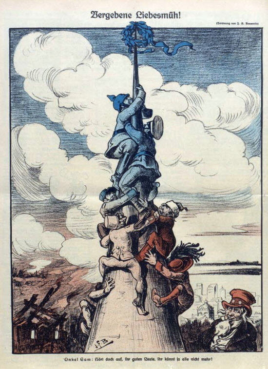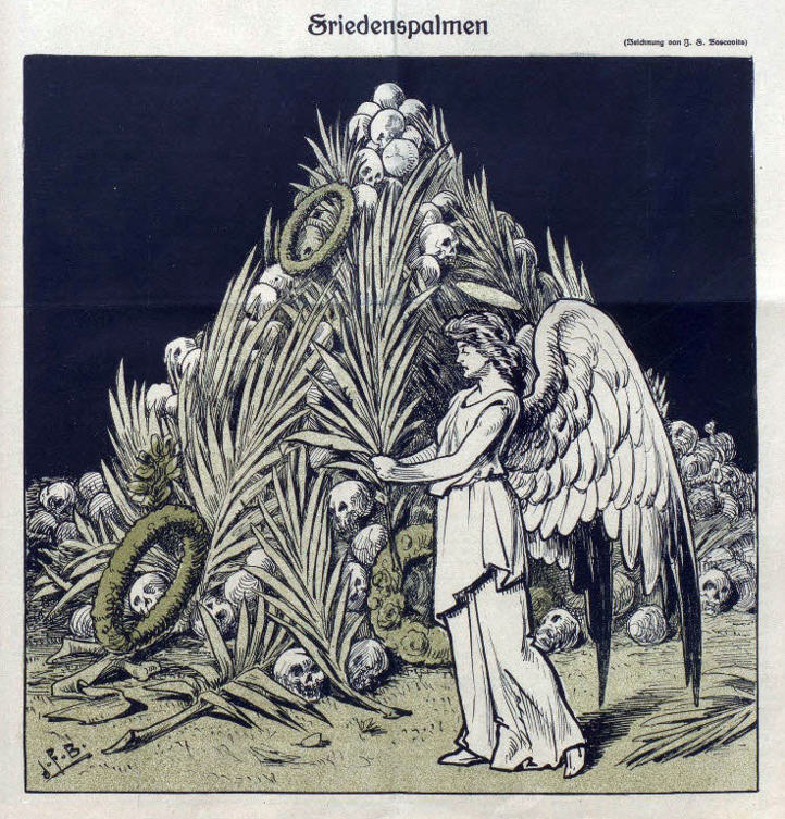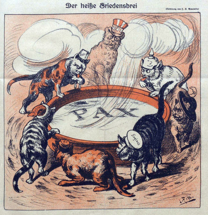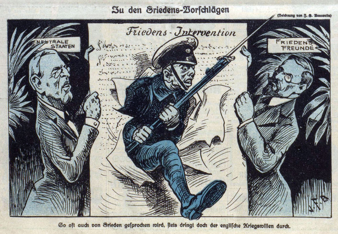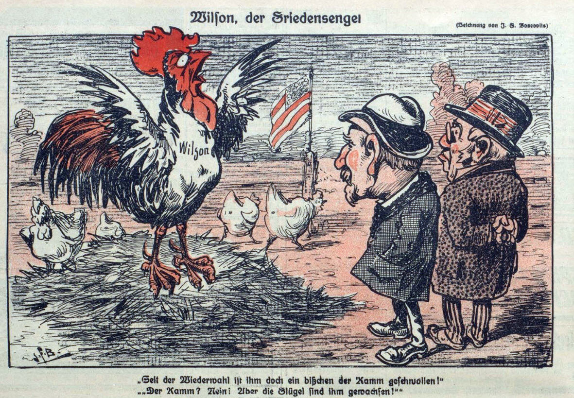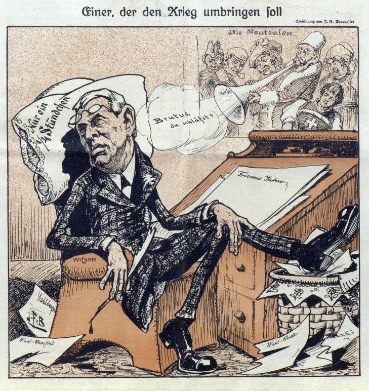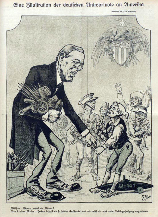 Eine Illustration der deutschen Antwortnote an Amerika - Woodrow Wilson |  Insektenstiche |  Friedenspalmen |  Metamorphosen |