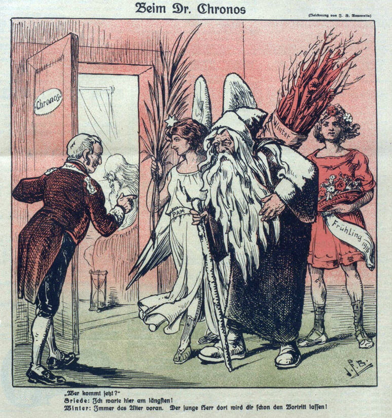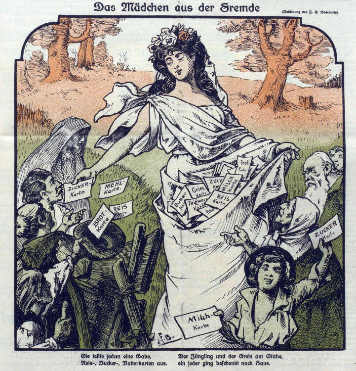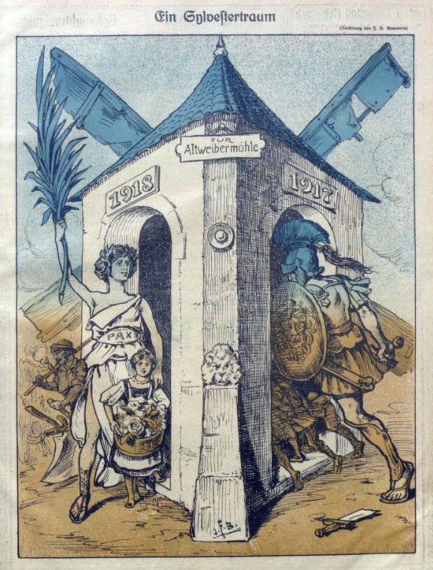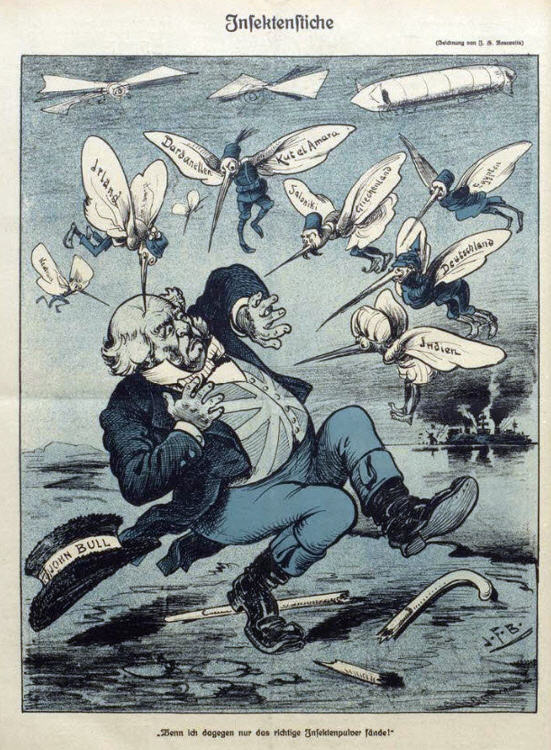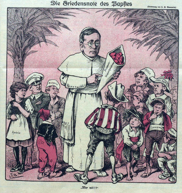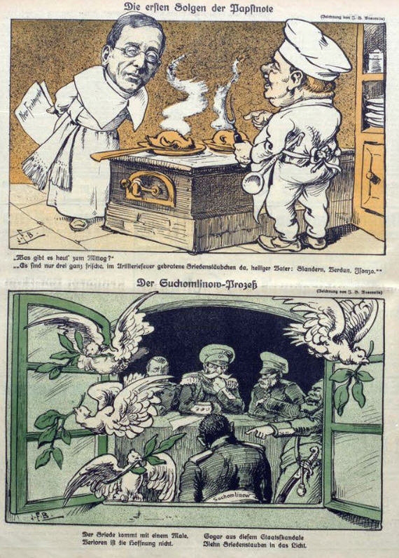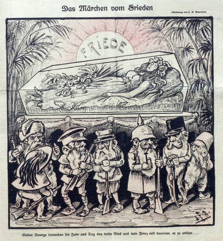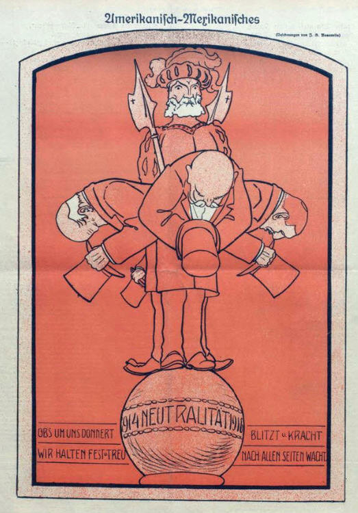 Eine Illustration der deutschen Antwortnote an Amerika - Woodrow Wilson |  Insektenstiche |  Friedenspalmen |  Metamorphosen |