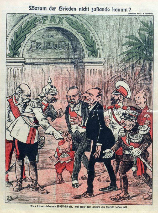 Die Amerikareise des Botschafters Gerard - James W. Gerard und Woodrow Wilson |  Ein Vorschlag zur Güte / Unbegreiflich |  Schöne Seelen finden sich / Vor der Abreise |  Warum der Friede nicht zustande kommt - Kaiser Franz Josef I, Kaiser Wilhlem II und Zar Ferdinand I |