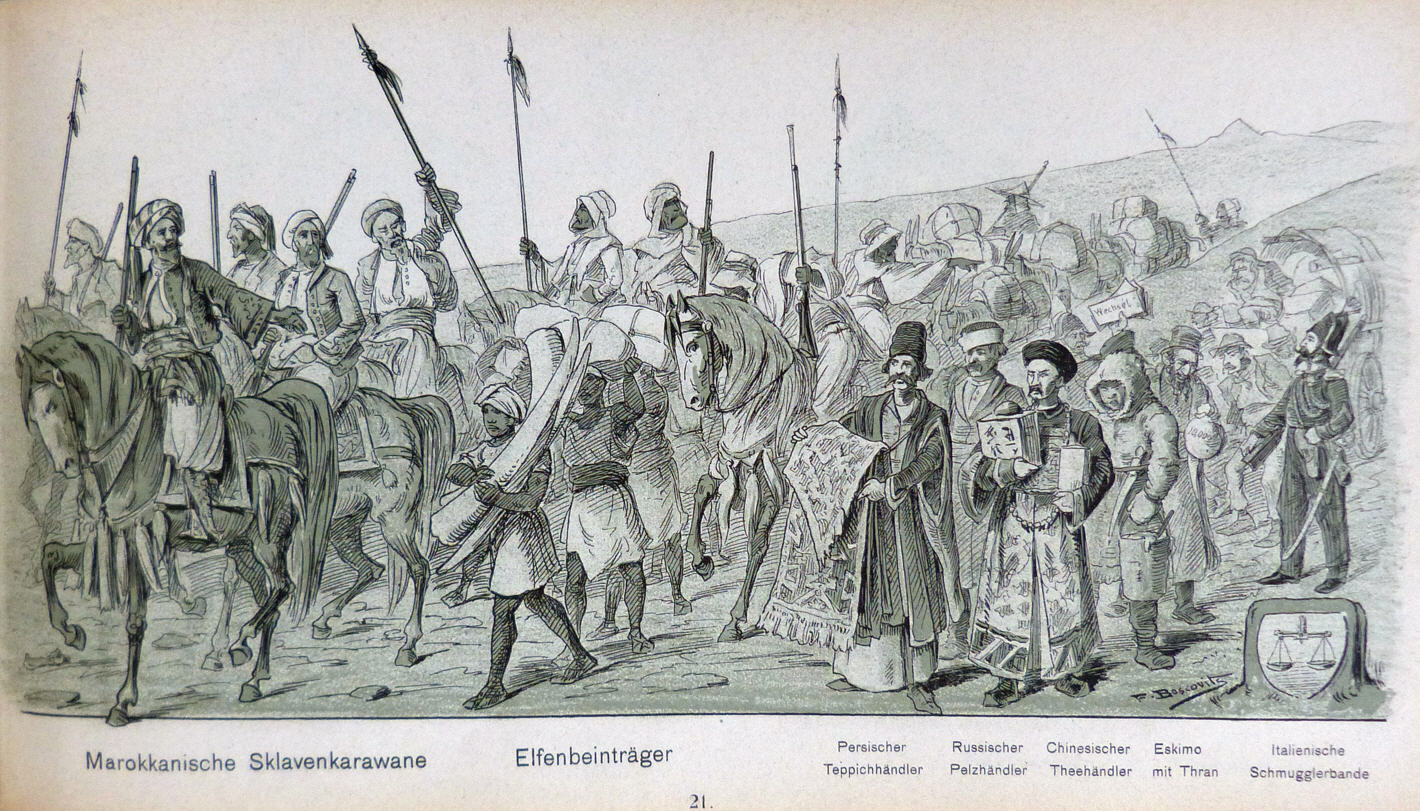 Marokkanische Sklavenkarawane, Elfenbeinträger, Händler |