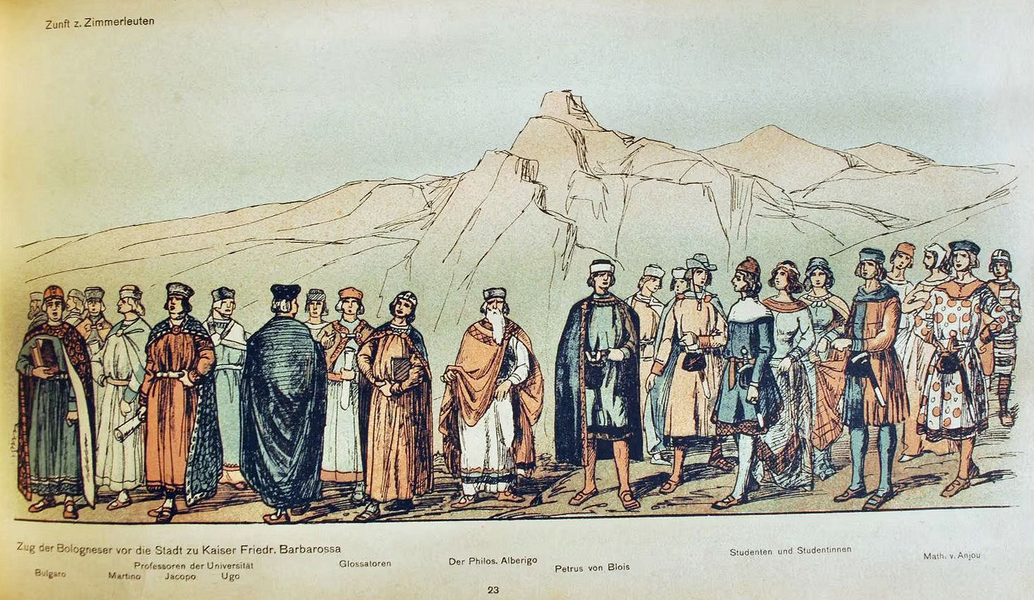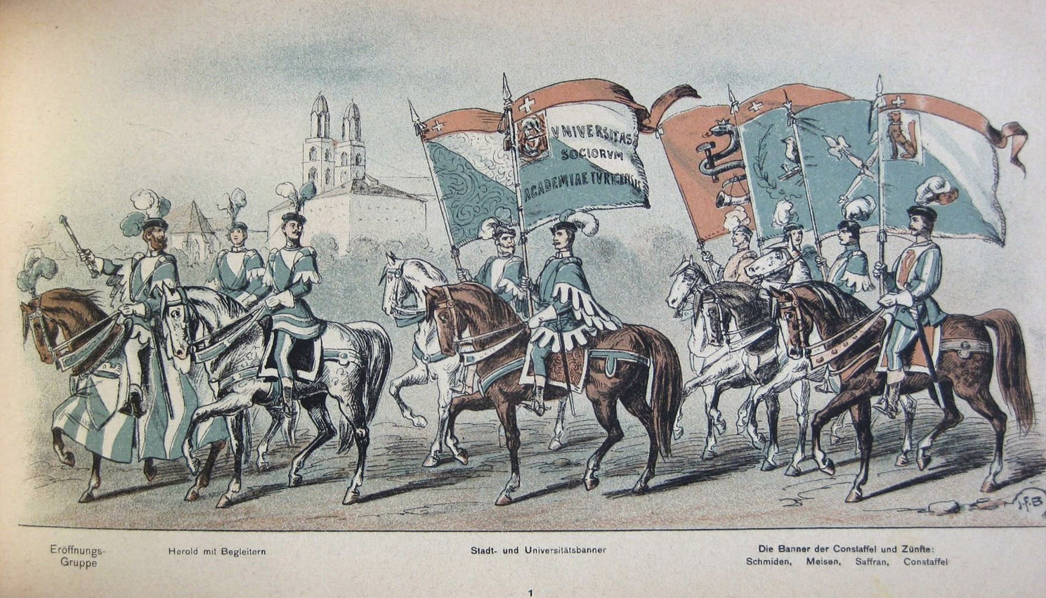 Festzug zur Einweihung der neuen Universität Zürich 1914 "Bilder aus der Geschichte des wissenschaftlichen Lebens" - gezeichnet von Johann Friedrich Boscovits und Fritz Boscovits
