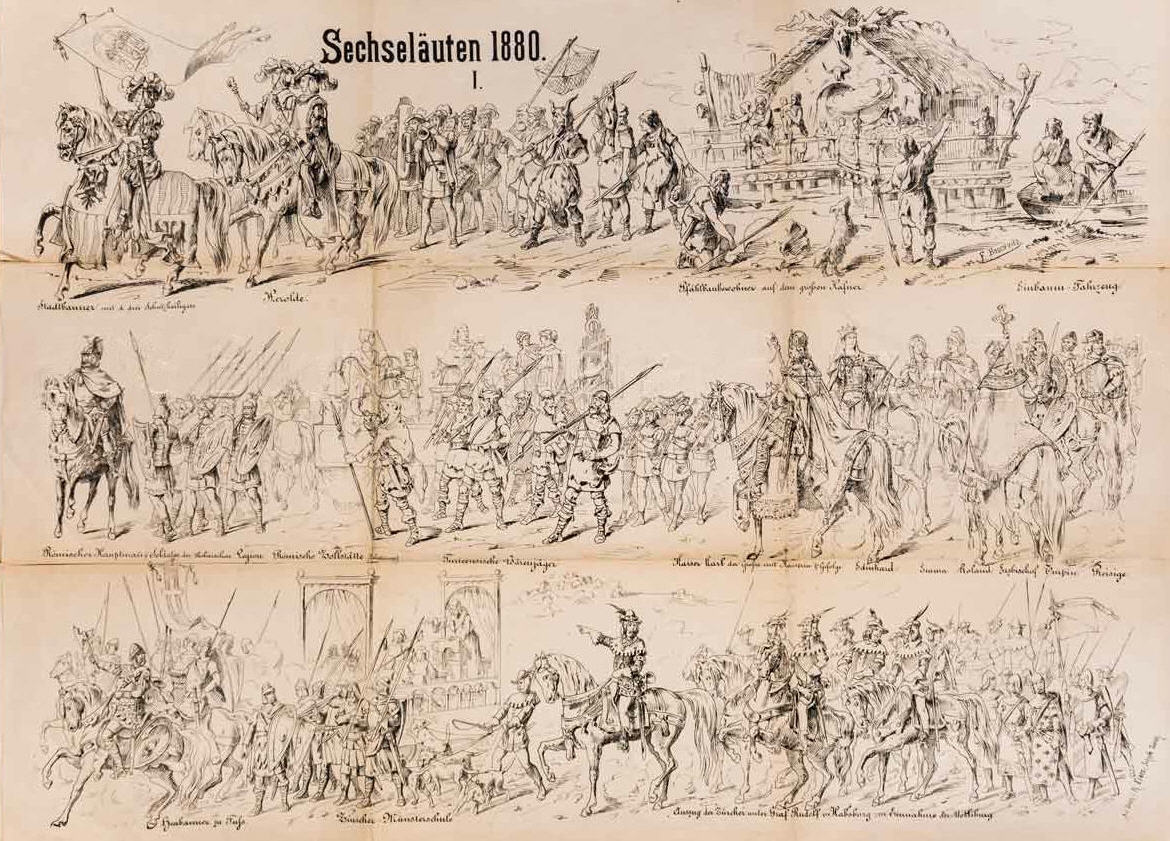 Sechseläuten: Historischer Festzug zur Eröffnung der Gotthardbahn 1882 gezeichnet von Johann Friedrich Boscovits und Emil Friedrich Graf