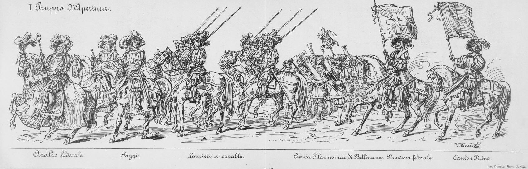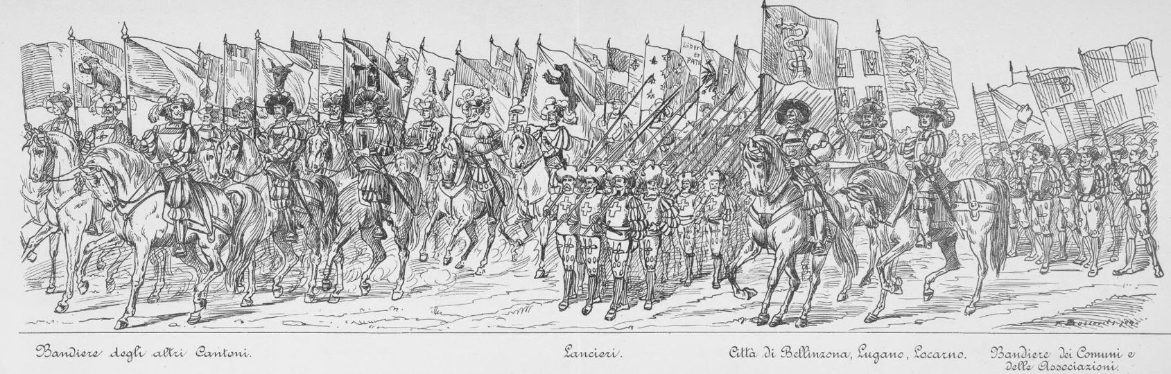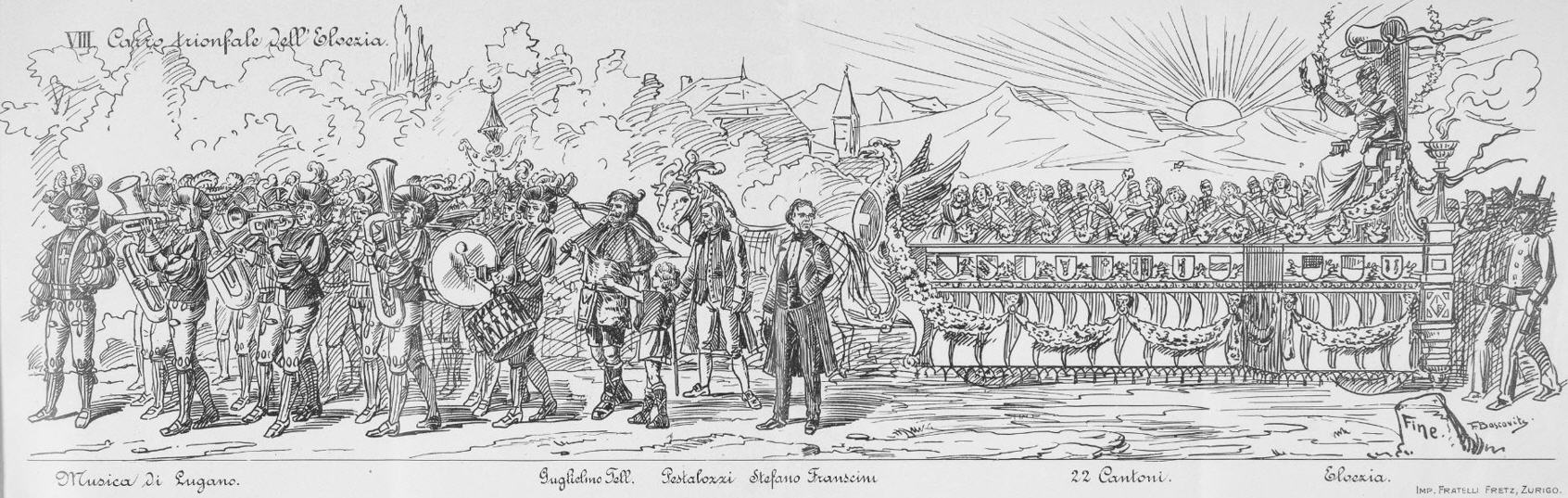 Festzug "Primo centenario dell' Autonomia ticinese" 1903 gezeichnet von Johann Friedrich Boscovits und Fritz Boscovits