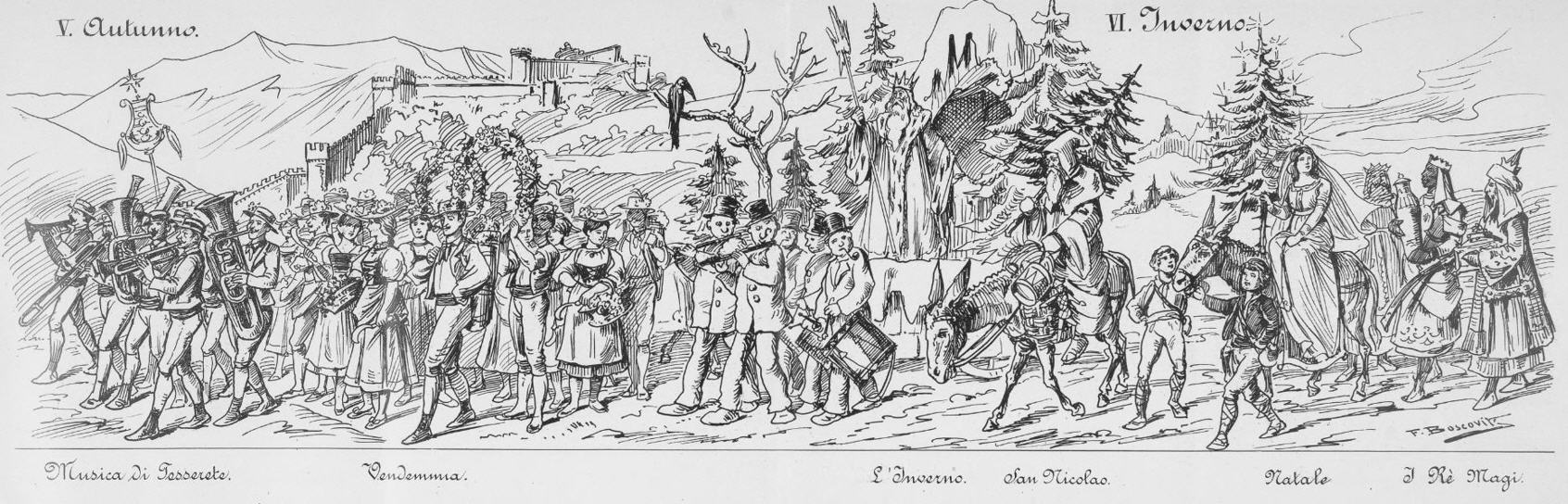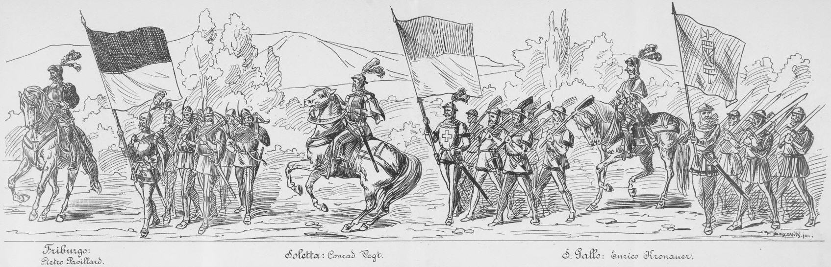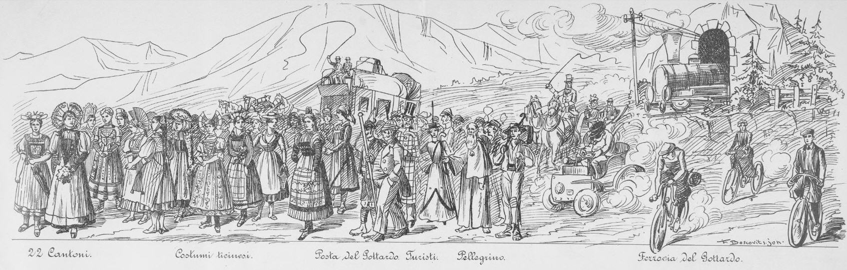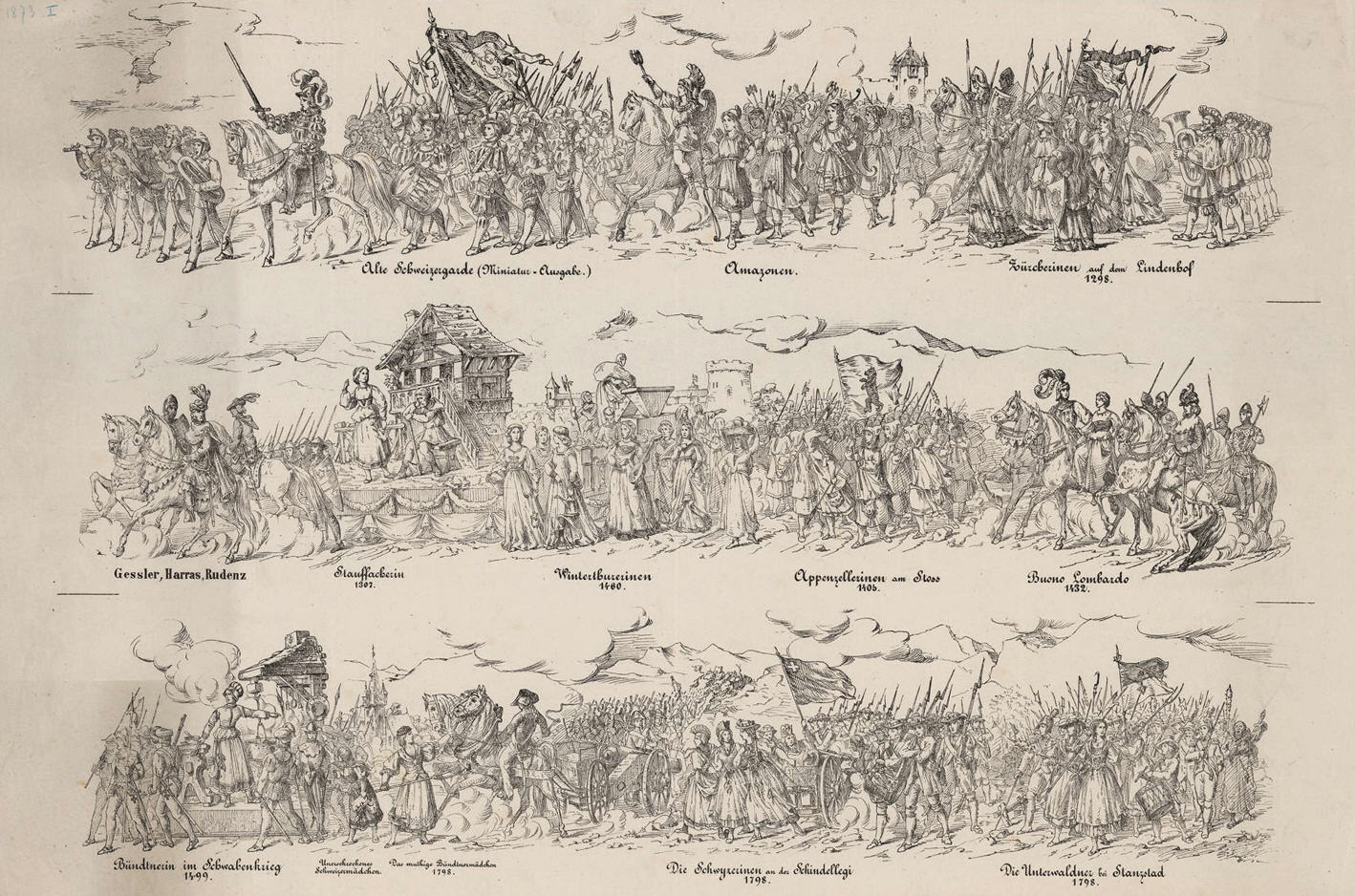 Festzug "Primo centenario dell' Autonomia ticinese" 1903 gezeichnet von Johann Friedrich Boscovits und Fritz Boscovits