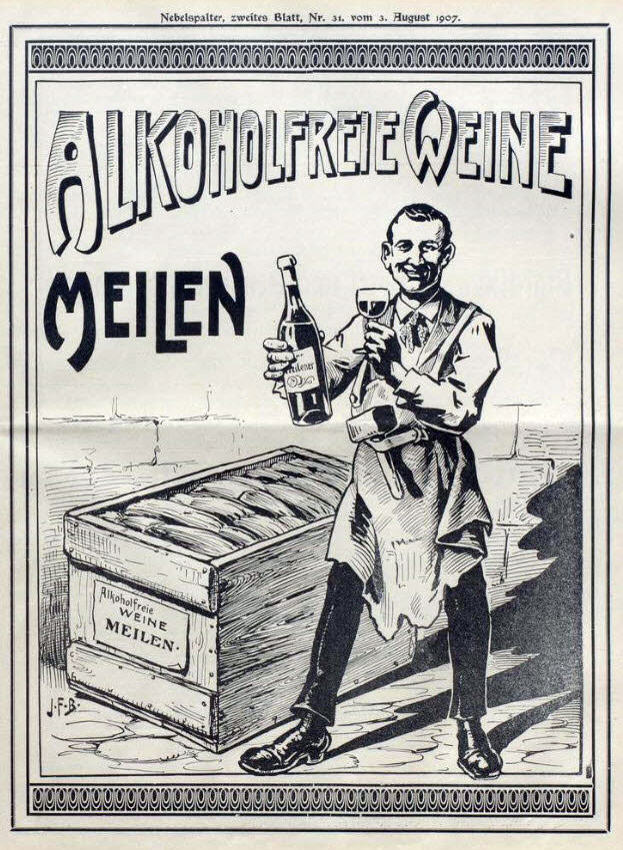 Alkoholfreie Weine Meilen - Werbung |  Alkoholfreie Weine Meilen - Werbung |  Alkoholfreie Weine Meilen - Werbung |  Alkoholfreie Weine Meilen - Werbung koloriert |