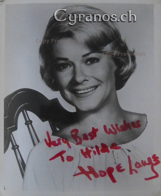 | Hope Lange (1933-2003) Bus Stop 1956, Glut unter der Asche 1957, Die jungen Löwen 1958, Die unteren Zehntausend 1961, Jigsaw 1968, Ein Mann sieht rot 1974, Blue Velvet 1986, Julia und ihre Liebhaber 1990, Das Kartell 1994 1 Oscar-Nomination Original-signiertes Foto 8x10 inches (Format A4) (G III) Euro/CHF 45.- | |