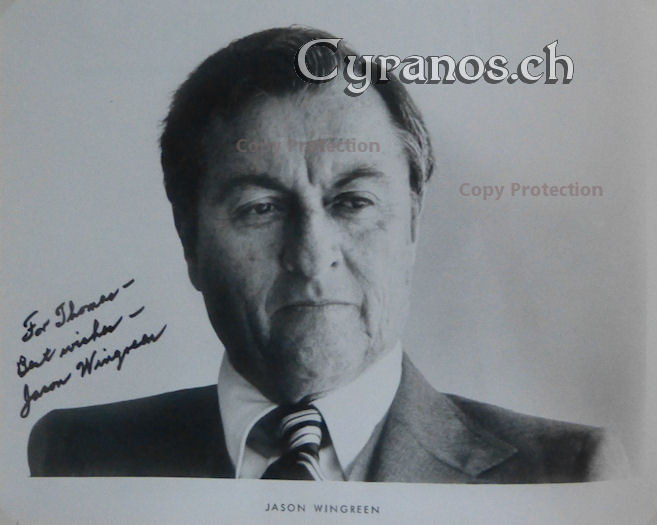 | Jason Wingreen (1920-2015) Bravados 1958, Auf der Flucht 1963-67, Stimme am Telefon 1965, Raumschiff Enterprise 1968, Mannix 1969, Geschossen wird ab Mitternacht 1970, Drei Engel für Charlie 1977, Roots 1979, Arthur 2 - On the Rocks 1988 Original-signiertes Foto 8x10 inches (Format A4) (F IV) Euro/CHF 25.- | |