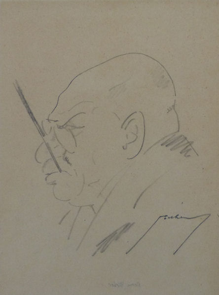 Ludwig Oskar Bellmont alias Rickenbach (1894-1945) Zahlreiche Karikaturen und Illustratoren für den "Nebelspalter". Desweiteren Gemälde, Holzschnitte und Radierungen. Original-Zeichnung mit Unterschrift (Format 21x26.5, Pergamentpapier, etwas vergilbt. Oben links kleine Beschädigung) Euro/CHF 90.- oder im Tausch gegen eine Original-Zeichnung eines anderen Karikaturisten/Illustratoren. | |