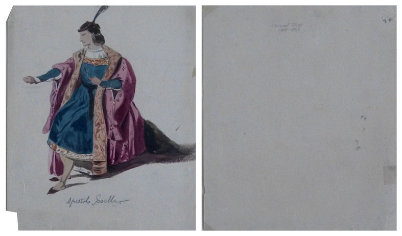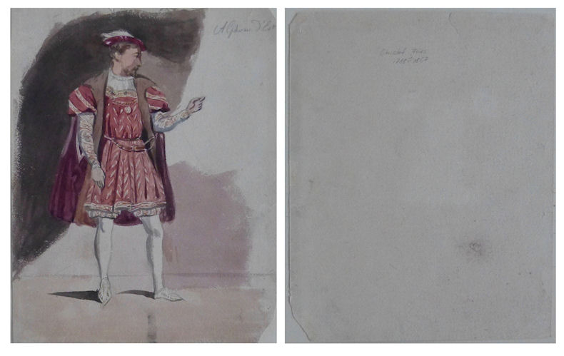 | Christof Fries (1788-1857) Kostümbildner, Sänger Er kreierte beinahe 40 Jahre lang die Kostüme für die Aufführungen des Hoftheaters in München von 1820 - 1857 Oben: Original-Zeichnung (Format 22x25.5 cm) Euro/CHF 59.- Unten: Original-Zeichnung (Format 22x25.5 cm) Euro/CHF 59.- | |