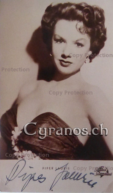 | Piper Laurie (1932-2023) Der Sohn von Alibaba 1952, Das goldene Schwert 1953, Haie der Grossstadt 1961, Carrie 1976, Der Bunker 1981, Die Dornenvögel 1983, Gottes vergessene Kinder 1986, Rendezvous mit einer Leiche 1988, Twin Peaks 1990 3 Oscar-Nominationen Original-signiertes Foto 3.5x5.5 inches (Postkartenformat) (H II) Euro/CHF 25.- | |