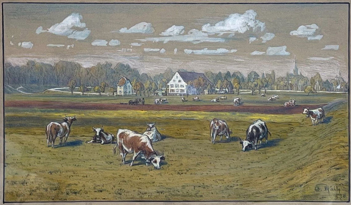 Der Maler und Illustrator Otto Maehly wurde am 19. September 1869 in Basel geboren. Nach seiner schulischen Ausbildung besuchte er verschiedene Ausbildungsstätter für Kunst, unter anderem in Basel, Leipzig, München und an der Julian in Paris. Anschliessend arbeitete er freischaffender Künstler. Vor allem anfangs seiner Laufbahn war er in den 1890er Jahren als Illustrator tätig, doch auch als Maler schuf er zahlreiche Motive. Die Motive für seine Landschaftsmalereien fand er als Mitglied des SAC bei zahlreichen Wanderungen durch die Alpenlandschaften der Schweiz. Für den SAC Basel kreierte er auch eine Speisekarte. Es folgten Ausstellungen seiner Arbeiten in der Kunsthalle Basel und im Kunsthaus Zürich. 1910 unternahm er die legendäre Zugreise mit dem Orientexpress von Paris nach Konstantinopel. Auch von dieser Fahrt hielt er einige Eindrücke in Gemälden fest. Als Illustrator zeichnete er zwischen 1892 und 1894 Beiträge für die Satirezeitschrift „Nebelspalter“ und er unterzeichnete diese Arbeiten jeweils mit O. M. Anschliessend trat er auch als Buchillustrator in Erscheinung, zu diesen Büchern gehören „Die Tochter des Marquis“ 1896, „Wie das Gratendorli glücklich wird“ 1897 und „Kallista“ 1899. Zudem stammen auch einige Poster aus seiner Hand wie „St. Margrethen – Kaffee-Wirtschaft“ und „Birseck-Bahn“. Otto Maehly verstarb am 1. Oktober 1953 im Alter von 84 Jahren in Basel. Foto von Otto Mähly bei Universitätsbibliothek Basel. |