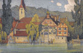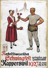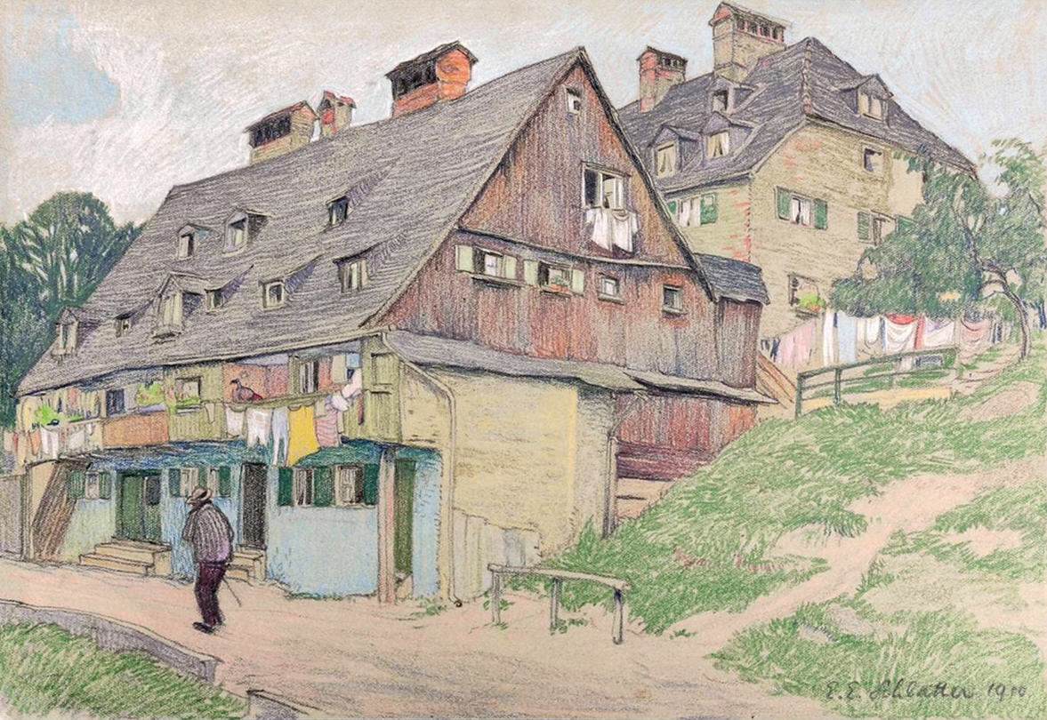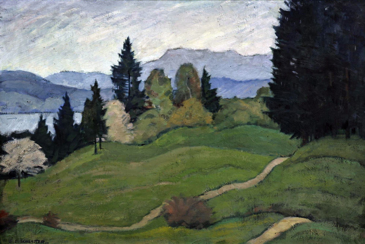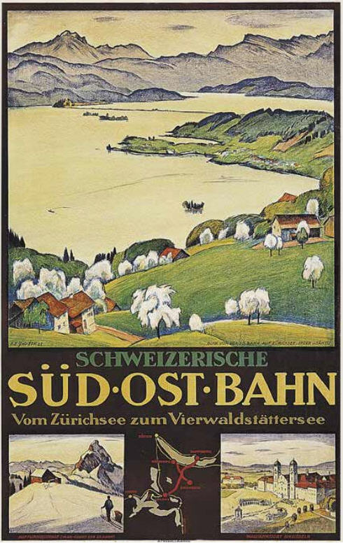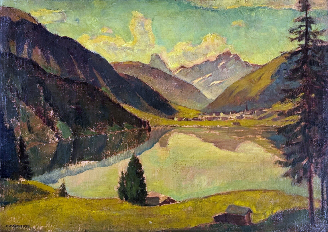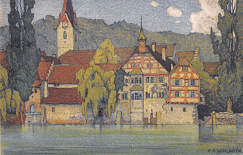Der Graphiker, Maler und Lithograph Ernst Emil Schlatter wurde am 27. November 1883 in Zürich geboren. Nach seiner schulischen Ausbildung ging er 1898 in eine vierjährige Berufslehre als Lithograph beim Polygraphischen Institut in Zürich. Schliesslich ging er 1905 nach Stuttgart, wo er sich seinen Lebensunterhalt als Lithograph verdiente, es folgte ein weiteres Studium an der Kunstgewerbeschule in Stuttgart. In dieser Zeit entstanden zahlreiche Gemälde und Zeichnungen, die oftmals Landschaften zeigten. Mit seiner Rückkehr in die Schweiz 1907 machte er sich bald einen Namen als Graphiker mit seinen zahlreich gestalteten Plakaten. Hier machte sich auch seine Ausbildung als Lithograph bezahlt. Zwischendurch ging er 1910 nach München, um seine künstlerische Fähigkeiten zu erweitern. Dort fand er nicht nur die Liebe zu Zeichnungen und zur Kunstmalerei, die ihn die nächsten Jahre stets begleiten sollten, sondern er lernte dort auch seine zukünftige Frau Franziska Hermle kennen. 1912 ging er nach Zürich zurück und seine Plakatarbeiten waren nachhaltig von der vorangegangenen Ausbildung geprägt und erfreuten sich grosser Beliebtheit. Seine Erfolge im In- und Ausland führten schliessich zur Berufung an die Kunstgewerbeschule Zürich, wo er von 1917 bis 1920 als Lehrer tätig war. Zu Ernst Emil Schlatters zahlreichen Plakaten gehören „RhB Rhätische Bahn“ (11), „Birsigtalbahn – Basel“ (11), „Mittel-Thurgau-Bahn“ (12), „Konstanz am Bodensee“ (12), „Insel-Restaurant Bauschänzli“ (13), „Kaiser-Strand-Hotel Lochau-Bregenz“ (13), „Elektr. Strassenbahnen im Kanton Zug“ (14), „Braunwald-Bahn“ (14), „Seetalbahn“ (17), „Tonhalle Zürich“ (17), „Aviation Nationale Suisse“ (19), Wahlplakat „Stimmt der Freisinnigen Liste VI“ (19), „Zuoz“ (21), „Thurg. Kant. Schützenfest Kreuzlingen“ (22), „Seenachtsfest Romanshorn“ (23), „Gewerbe-Industrie und Landwirtschaftsausstellung Sulgen“ (24), „Internationales Schaufliegen Romanshorn“ (24), „Rival“ (25), „Schweizerische Süd-Ost-Bahn“ (25), „Der Kreis – Kunstausstellung Lindau“ (26), „Nordostschweizerisches Schwingfest Rapperswil“ (27), Wahlplakat „Wirtschaftsgesetz Nein“ (28), Wahlplakat „Strassen-Verkehrs-Gesetz Ja“ (29),Wahlplakat „Gemeinde-Bestimmungsrecht“ (29), „21. Thurg. Kantonal Turnfest Kreuzlingen“ (30), Wahlplakat „Jagdgesetz Nein“ (30), „Thurg. Kantonal. Gesangsfest Kreuzlingen“ (33), „Pferderennen Arosa“ (34), „Schwimmbad Walzenhausen“ (35), „Arosa“ (36), „Für das Alter“ (39), „Appenzellerland“ (40), Wahlplakat „Wählt Liste 4 Doktor Bircher“ (43), „63. Thurgauisches Kantonal-Gesangsfest Romanshorn“ (47). Neben seiner Tätigkeit als Graphiker begann er 1920, als freischaffender Künstler zu wirken. Er liess sich in Uttwil am Bodensee nieder und 1925 errichtete er sein eigenes Wohn- und Atelierhaus „Moosacker“. Zwischen 1922 und 1924 erschienen insgesamt 17 Karikaturen von ihm in der Satirezeitschrift „Nebelspalter“. Sein künstlerisches Werk wurde abgerundet mit Lithographien von Thurgauer Landschaften, aber auch weitere Landschaften wie Südrhodesion sowie Porträts, Karikaturen und Mappenwerke. Zudem schuf er zahlreiche Motive für Postkarten, die seine Arbeiten in die Welt hinaustrugen. Ernst Emil Schlatter übte verschiedene Funktionen aus, so war er in den Jahren 1919 bis 1924 und 1953 bis 1954 der Präsident der Zürcher Künstlervereinigung und Mitglied der Künstlervereinigung „Der Kreis“ von 1925 bis 1937. Er engagierte sich zudem beim Thurgauer Heimatschutz und bei der Gesellschaft für Literatur und Musik in Romanshorn. Der vielseitige Künstler verstarb am 13. September 1954 im Alter von 70 Jahren in Uttwil. Weitere Informationen und Bildmaterial findet man auf der Homepage „Ernst Emil Schlatter“. Desweiteren werden zahlreiche seiner Plakate auf der Homepage des „Plakatarchivs“ gezeigt. |