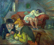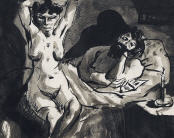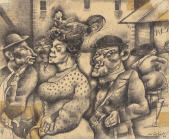 Schwestern an Tuberkulose. In den kommenden Jahren lebte er bei seiner Mutter, die als Journalisten und Übersetzerin arbeitete. Nach seiner schulischen Ausbildung schloss er eine Ausbildung als Grafiker ab und nahm Zeichenunterricht, unter anderem bei E. O. Leuenberger. Mit dem Ausbruch des 1. Weltkrieges wurde der junge Johann Robert Schürch zum Grenzschutz eingezogen. Er zog 1916 nach Genf, wo er kurzzeitig die Ecole des Beaux-Arts besuchte und er nahm bei E. Gilliard Zeichenunterricht. Gleichzeitig war er bei Ferdinand Hodler als Ateliergehilfe tätig. Zwei Jahre später verstarb Ferdinand Hodler und Johann Robert Schürch zeichnete seinen Unterstützer auf dem Totenbett. In dem Unternehmer Kurt Sponagel fand er seinen wichtigsten Mentor. 1921 ging er Dank eines Stipendiums der Armin-Honegger-Stiftung nach Florenz, wo er während rund sechs Monaten die grossen Künstler kopierte, um seine Kunstfertigkeit zu erweitern. Im gleichen Jahr arbeitete er bis 1932 in einem kleinen Chalet in Monti della Trinita oberhalb von Locarno. In jenen Jahren schuf er mehr oder weniger zurückgezogen von der Umwelt zahlreiche Tuschezeichnungen und Aquarelle, die ihn zu seinem eigenen künstlerischen Stil führten. Bei einem fatalen Autounfall im Jahre 1933 verletzte er sich schwer und litt den Rest seines Lebens an den Folgen. Als er 1935 Erica Leutwyler (1915-2015) kennenlernte, wurde sie seine Partnerin. Die beiden hielten sich im Umfeld zu den Künstlern in Monte Verita auf. 1939 verstarb seine Mutter und Johann Robert Schürch wurde im gleichen Jahr zum Grenzdienst eingezogen. Er wurde jedoch schon bald wegen Bronchitis wieder entlassen. Ein Jahr später wiederholte sich die grosse Tragödie innerhalb der Familie, als er an offener Tuberkulose erkrankte. Am 14. Mai 1941 verstarb ebenfalls an dieser heimtückischen Krankheit im Alter von nur 45 Jahren. In seinen unzähligen Zeichnungen hielt er Menschen in ihren Lebenssituationen fest, oftmals auch Menschen, die am Rande der Gesellschaft lebten (Trinker, Bettler, Dirnen, Behinderte) und ein einfaches hartes Leben führten. Desweiteren schuf er auch viele Landschaftszeichnungen sowie zahlreiche Selbstbildnisse. Der Nachlass von Johann Robert Schürch befindet sich bei der Erica Ebinger-Leutwyler Stiftung. |
