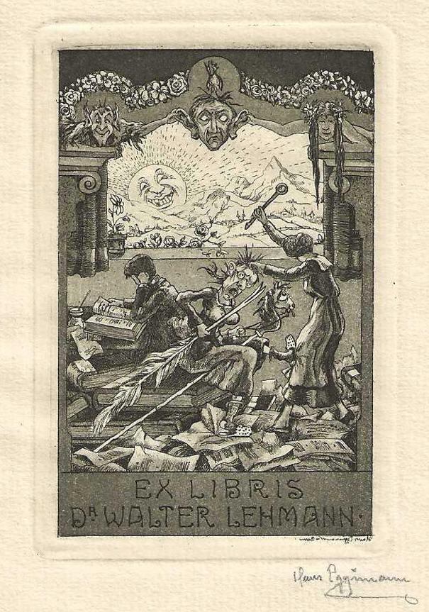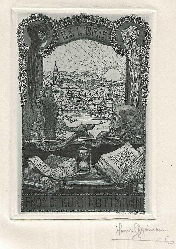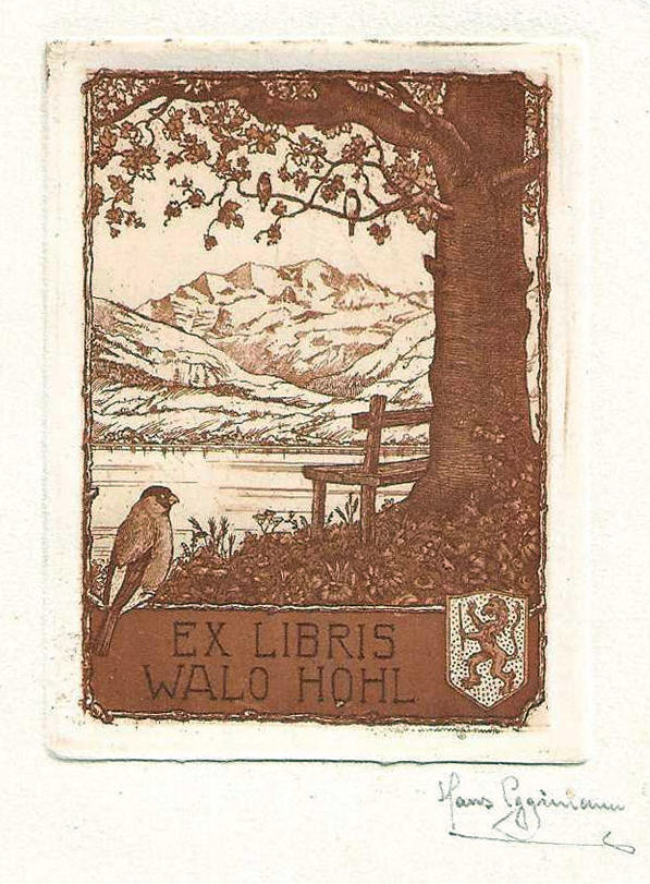 . Exlibris Die Traditon der Exlibris lässt sich auf Ende des 15. Jahrhunderts zurückdatieren. Über mehrere hundert Jahre war es beliebt, den Besitz seiner Bücher mit dem Einkleben von persönlichen Exlibris zu kennzeichnen und schon früh gestalteten namhafte Künstler solche Exlibris. Zu ihnen gehören u.a. auch Albrecht Dürer, Hans Holbein der Jüngere, Lucas Cranch dem Älterem und Hans Baldung. Zu Beginn lagen Holzschnitte als Vorlagen für die Erstellung der Exlibris vor, später wurden diese von Radierungen abgelöst. Der Höhepunkt der Exlibris nahm ab 1880 seinen Lauf und es entstanden viele Sammler, die sich auf Exlibris spezialisierten. Bis in die Zeit des Jugendstils erfreuten sich die Exlibris grosser Beliebtheit. In den letzten Jahrzehnten hat die Verwendung von Exlibris stark nachgelassen. Gerne werden diese noch von Bibliotheken verwendet - heute oftmals als Stempel - doch unter Privatpersonen ist diese kunstvolle Eigentumsmarkierung langsam verschwunden. Hans Eggimann schuf etwas mehr als 100 heute bekannte Exlibris und diese gehörten zu seiner Zeit zu beliebten Sammler-Objekten. Für die untenstehende Galerie werden noch fehlende Exlibris aus der Hand von Hans Eggimann gesucht. Zusendungen in digitaler Form werden dankend entgegengenommen. Gesucht werden noch folgende Exlibris von Hans Eggimann: Exmusicis Hans Eggimann, Bronano Charles, Georg Bäriswil, Prof. Dr. Walthard, Elise Tschanz, Erika Schwarz, Armin Hodler, Gugelmann-Legler, Gustave Bridel, Heinrich Korrodi, Hugo Schlosser, Max Lauterburg, Theda Tobler, Theodor Tobler, Berta Volkmann, Marguerite Wäber, Emil Marti, Kummer, Robert Schöpfer, Anton Bippi, Janne Déglise, Roesti-Cramer, Charles Bornard, Annie W. Franchot, Hans und Hanni Vogt-Beer, Frieda Bürki, Frieda Jäggi, Dr. med. Ernst Anderes, Gorge Munson, Nicholas van Vranken Franchot, Freysz-Scheller, S. Orustein, Milli Guggisberg, Clara Rychner, Dr. Hermann Rennefahrt, Elsbeth Guggisberg, O. Kesselring, PEFAC - Peter Gegenbauer, Alfred Liechty, E. Lohner und Hermann Liechty |