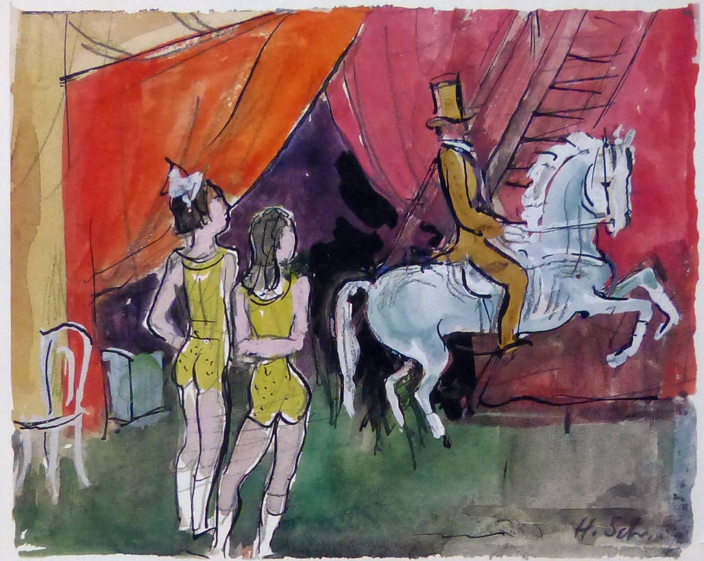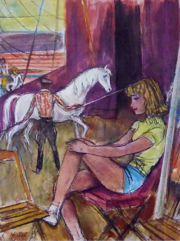 .Gemälde Im Laufe der Jahre schuf Hans Schoellhorn zahlreiche Gemälde, die ihn zu einem der bekanntesten Winterthurer Künstler machten. Während viele der damaligen Künstler aus Winterthur nach ihrem Tod mehr oder weniger in Vergessenheit gerieten, gehören Hans Schoellhorn und Rudolf Zender auch heute noch zu jenen Künstlern, deren Werke nach wie vor im vierstelligen Bereich verkauft werden. Viele seiner Malmotive zeigen die faszinierende Welt des Zirkus und seine Arbeiten gewähren auch Einblicke hinter die Kulissen. Desweiteren verarbeitete er seine auf Reisen gewonnenen Eindrücke in seinen Gemälden, die er meist in südlichen Gefilden Europas aber auch in Nordafrika fand. Abgerundet wird die nachstehende Galerie mit Porträts, Akten und Alltagsszenen.