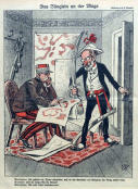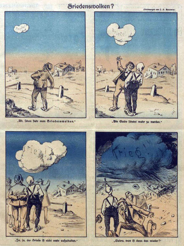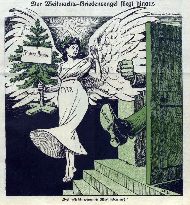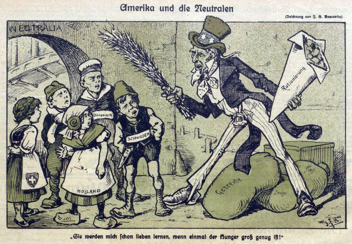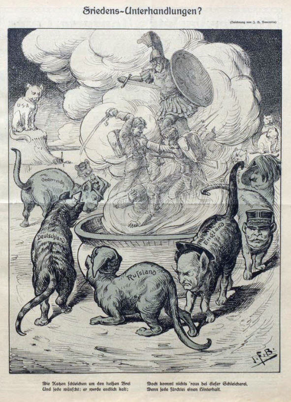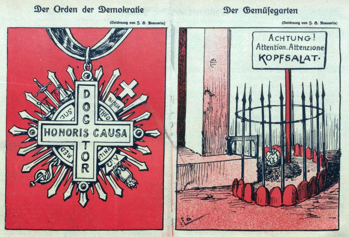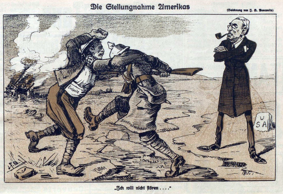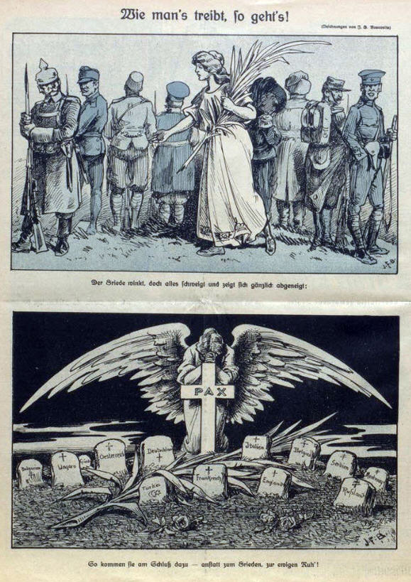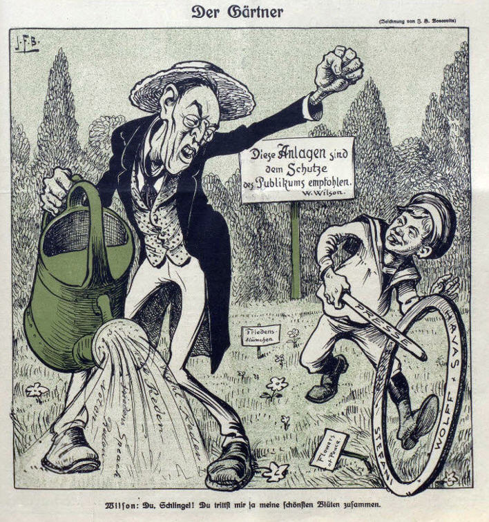 Eine Illustration der deutschen Antwortnote an Amerika - Woodrow Wilson |  Insektenstiche |  Friedenspalmen |  Metamorphosen |