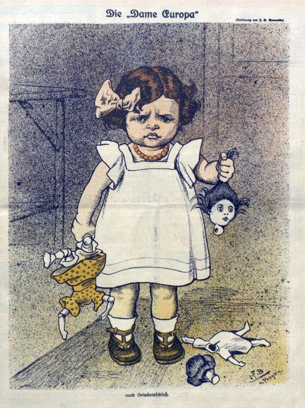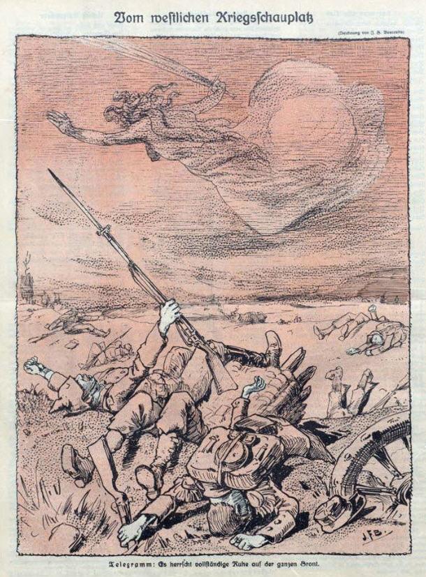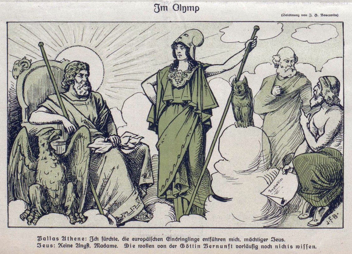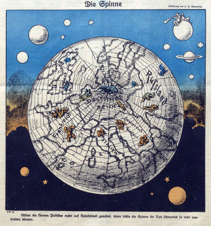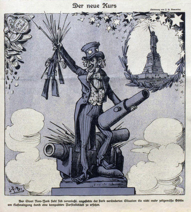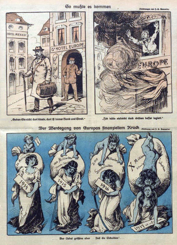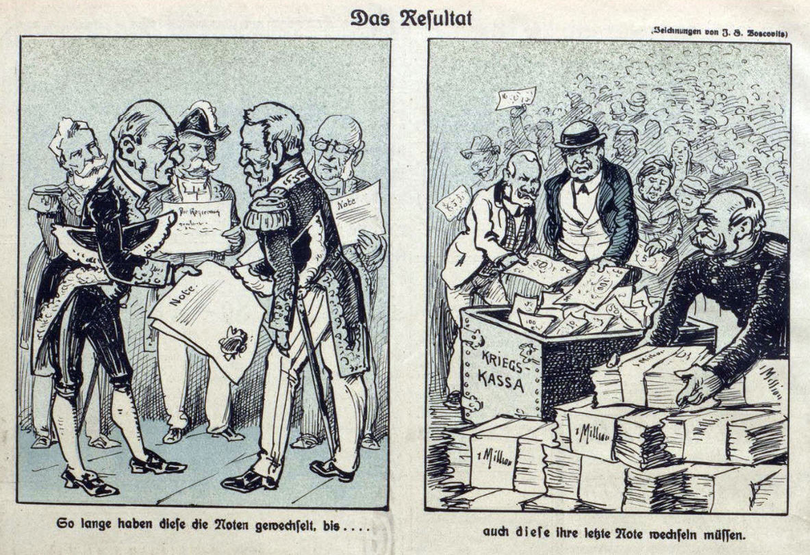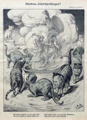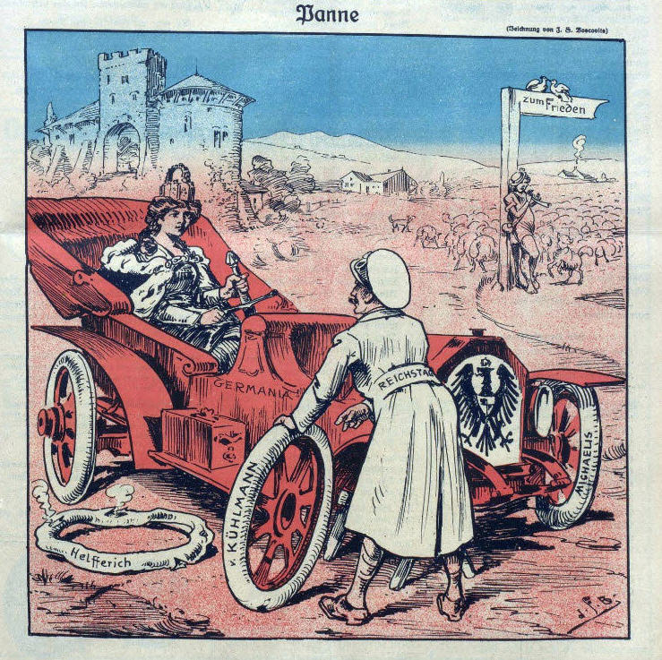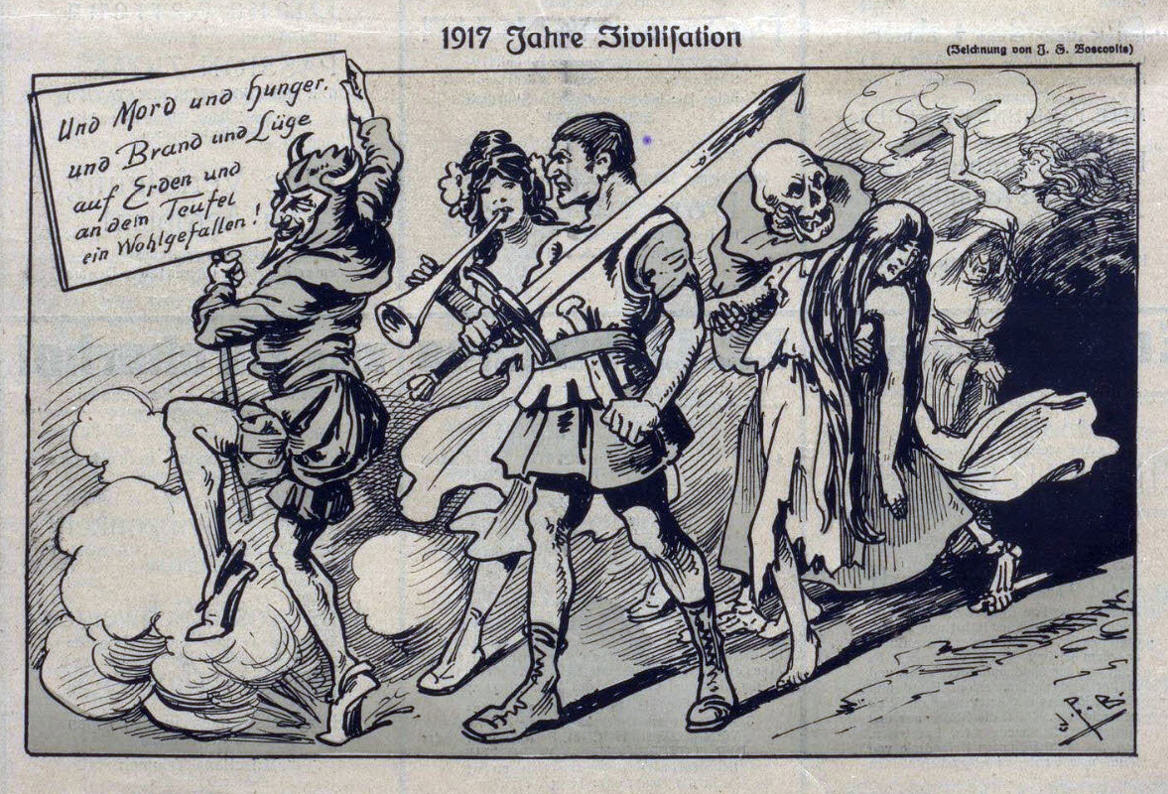 Eine Illustration der deutschen Antwortnote an Amerika - Woodrow Wilson |  Insektenstiche |  Friedenspalmen |  Metamorphosen |