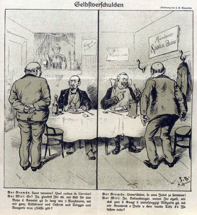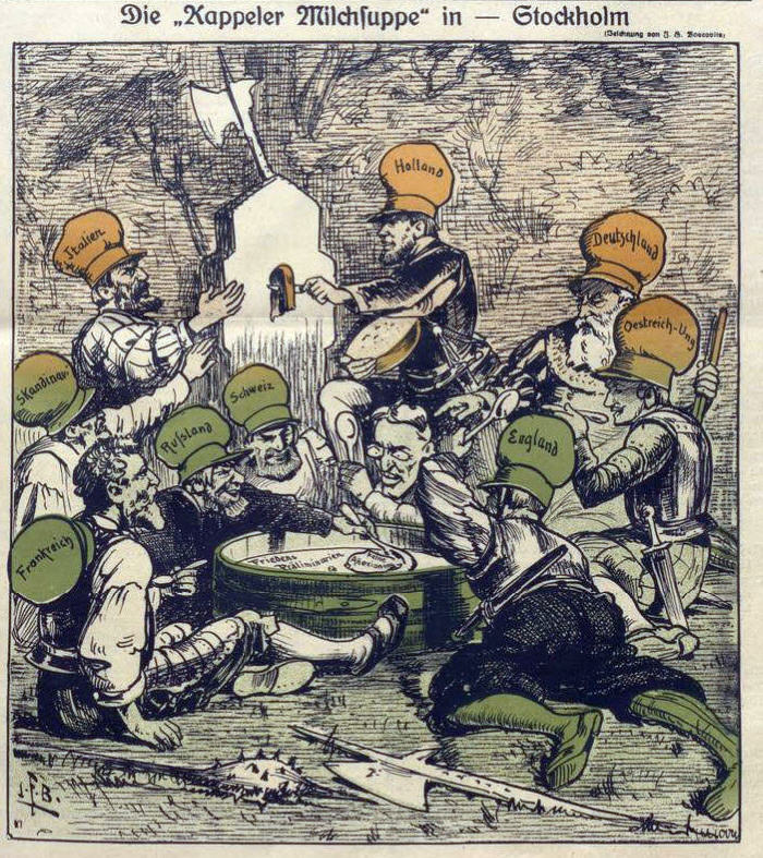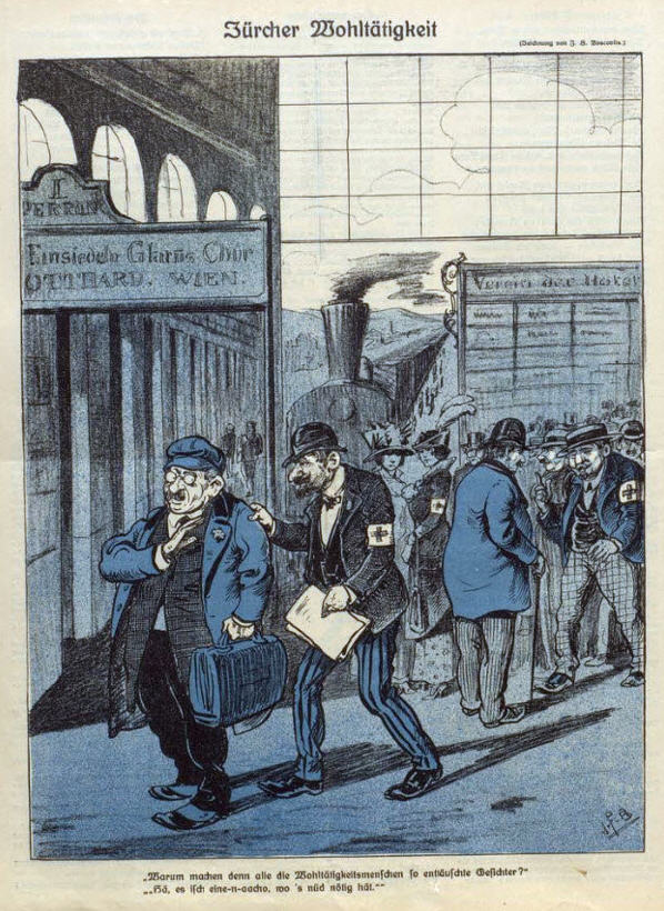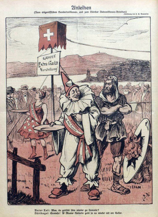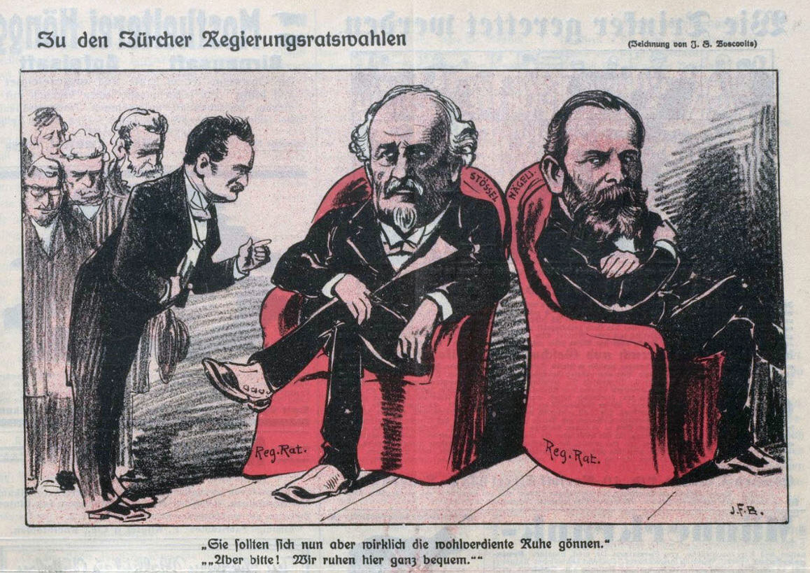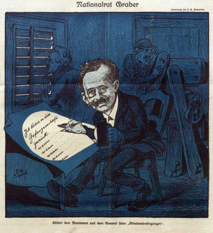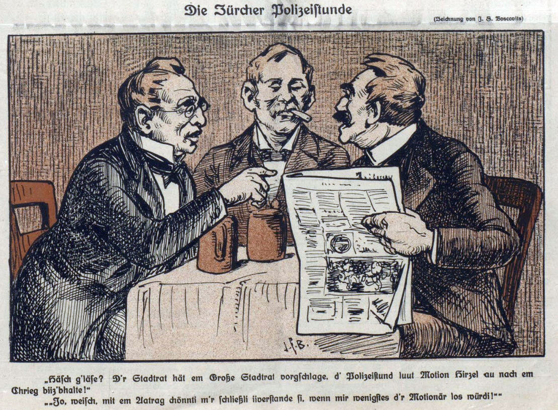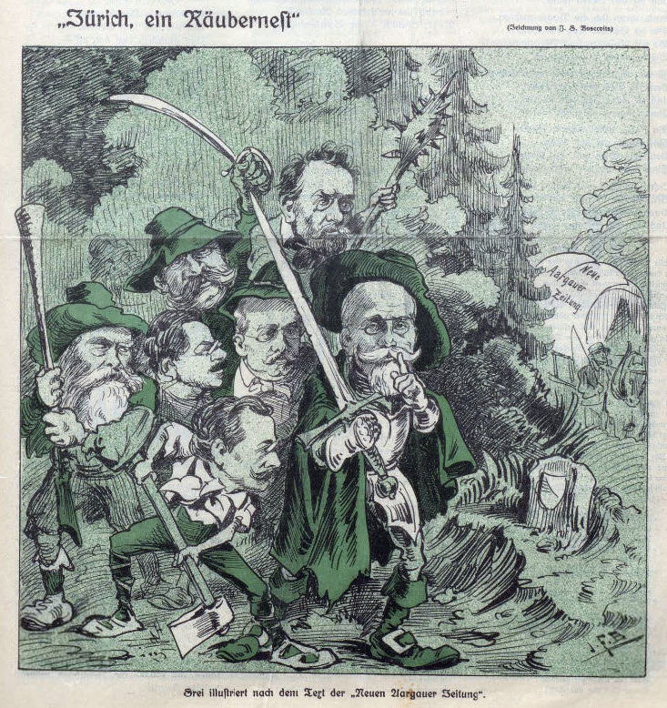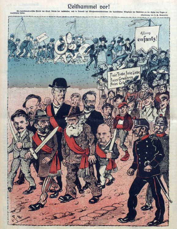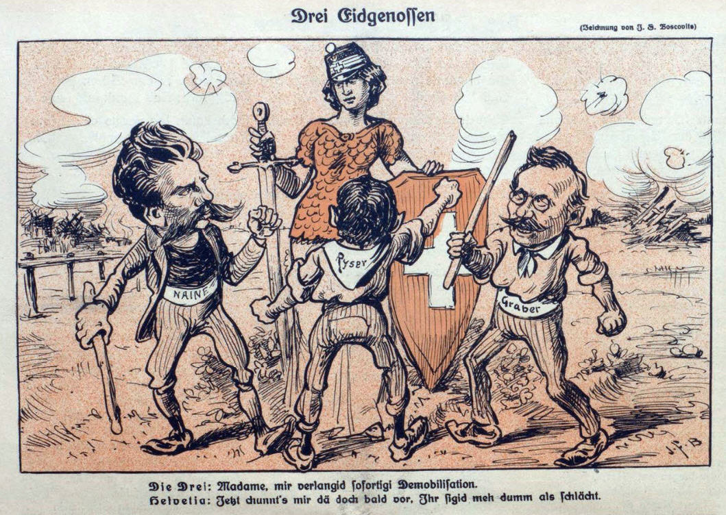 Aus der Galerie berühmter Eidgenossen - Robert Ferdinand Treytorrens de Loys |  Die Drei - Charles Naine, Ernest-Paul Graber und Robert Grimm |  Der Genfer Tribun Sigg droht - Jean Sigg |  Leithammel vor! |