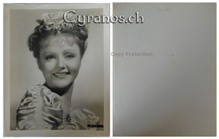 | Minna Gombell (1892-1973) The Great Power 1929, Bad Girl 1931, Kinder auf den Strassen 1933, Die lustige Witwe 1934, Der dünne Mann 1934, Babbitt 1934, Laurel & Hardy: Die Klotzköpfe 1938, The Great Waltz 1938, Der Glöckner von Notre Dame 1939, High Sierra 1941, The Best Years of Our Lives 1946 Sie spielte die Ehefrau von Oliver Hardy in "Die Klotzköpfe" 1938. Original-signiertes Foto 8x10 inches (Format A4, Ecke oben rechts beschädigt, rückseitig Klebespuren) (X II) Euro/CHF 59.- Rarität | |