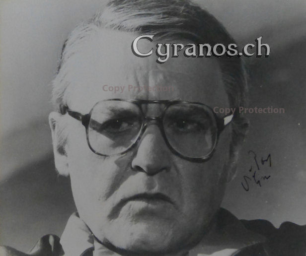 | Wolfgang Völz (1930-2018) Wege im Zwielicht 1948, Der 20. Juli 1955, Der Mann im Strom 1958, Die 1000 Augen des Dr. Mabuse 1960, Der grüne Bogenschütze 1961, Emil und die Detektive 1964, Funeral in Berlin 1966, Raumpatrouille 1966, Graf Yoster gibt sich die Ehre 1967, Pippi Langstrumpf 1970, Hui Buh 2006 Original-signiertes Foto 8x10 inches (Format A4) Euro/CHF 9.- Das Autogramm wurde persönlich bei einem Gastspiel 2005 gesammelt. The autograph was collected in person at a play in 2005. | |