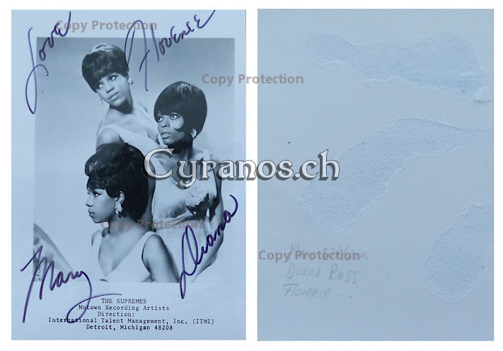 Unterschrieben haben Diana Ross (1944), Mary Wilson (1944-2021) und Florence Ballard (1943-1976)