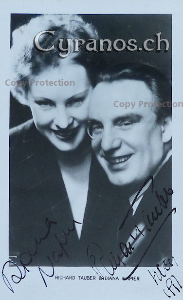 Unten: Original-signiertes Foto 3.5x5.5 inches (Postkartenformat) (A I) Das Foto wurde sowohl von Richard Tauber als auch von seiner Ehefrau Diana Napier signiert. Euro/CHF 49.- |