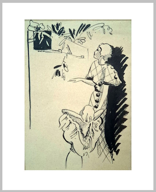 | Otto Bachmann (1915-1996) Maler, Illustrator, Grafiker Nach seiner schulischen Ausbildung ging er in eine Grafikerlehre und an der Kunstgewerbeschule Luzern gehörte Max von Moos zu seinen Förderer. Schliesslich ging er nach Zürich, wo er zunächst bei der Werbeagentur Althaus arbeitete, doch schon bald zog es ihn in die freiberufliche Zone und er begann als Maler. Der Erfolg indes liess auf sich warten, doch Otto Bachmann liess sich davon nicht abhalten und er reiste durch zahlreiche europäische Länder und er finanzierte seine Reisen mit Gelegenheitjobs wie bei Wanderzirkussen, deren spezielles Leben ihn stets faszinierte und später auch in seinen Arbeiten zum Vorschein kamen. Einen ersten Erfolg erzielte er 1943 mit der Faust-Mappe, die zwölf Arbeiten von ihm umfassten. Auch als Buchillustrator war er ein gefragter Künstler. Sein illustratorisches Talent zeigte er auch in Ausgaben der Zeitschrift „Schweizer Spiegel“. Die oben links abgebildete Original Tuschzeichnung erschien 1939 für den Artikel „Die grosse Schwester“ in dieser Publikation. Seine Arbeiten präsentierte er in den kommenden Jahren in zahlreichen Ausstellungen und seine Lithographien erfreuten sich grosser Beliebtheit. Die Ausstellungen waren nicht nur auf die Schweiz begrenzt sondern entstanden auch in Paris, New York, München, Chicago und Boston. Original-Zeichnung (Format 14.5x21 cm) Euro/CHF 39.- Die Zeichnung erschien 1938 in der Zeitschrift "Schweizer Spiegel" | |