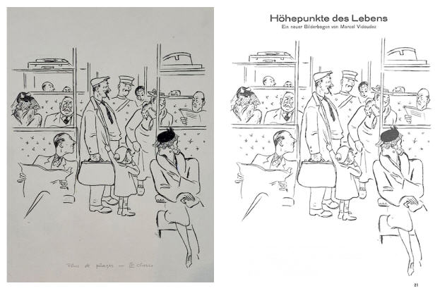 Marcel Vidoudez (1900-1968) Illustrator Oben: Original-Zeichnung monogrammiert (Format 12.5x14.5 cm) für die Zeitschrift "Schweizer Spiegel" Mai 1929 Euro/CHF 49.- Unten: Original-Zeichnung (Format A4) für die Zeitschrift "Schweizer Spiegel" November 1940 Euro/CHF 49.- oder im Tausch gegen eine Original-Zeichnung eines anderen Karikaturisten/Illustratoren/Comic-Zeichner. | |