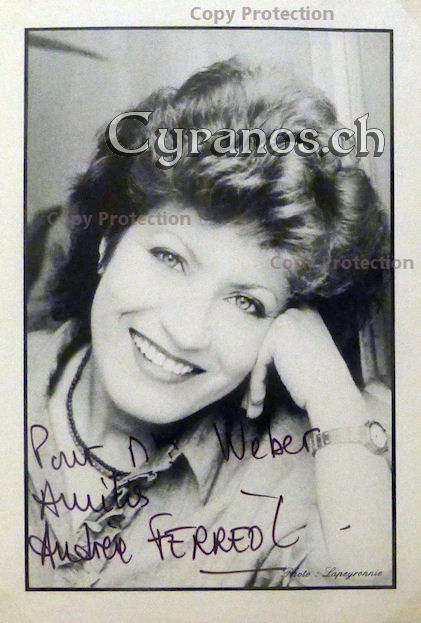 | Suzy Delair (1917-2020) Un caprice de la Pompadour 1931, Die Dame vom Maxim 1932, Der Mörder wohnt Nr. 21 1942, Unter falschem Verdacht 1947, Tödliche Leidenschaft 1949, Atoll K 1951, Rocco und seine Brüder 1960, Brennt Paris? 1966 Sie spielte u.a. auch mit Stan Laurel & Oliver Hardy. Original-signiertes Foto 3.5x5.5 inches (Postkartenformat) (D II) Euro/CHF 19.- | |