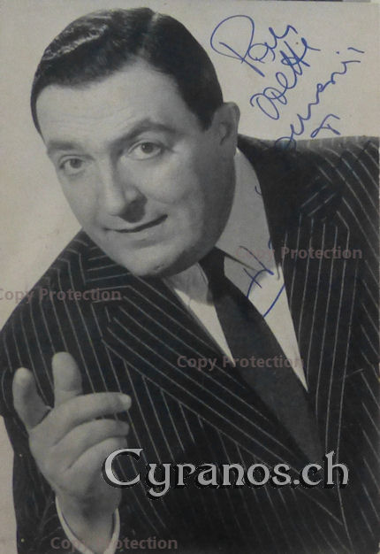 Grey (1896-1996) Les bleus de l'amour 1918, La dame de Vittel 1937, Boléro 1942, Retour de flamme 1943, Rome Express 1950, Julietta 1953, Le tombeur 1958, Bomben auf Monte Carlo 1960, Une autre vie 1971, La boum 1980, Le gaffeur 1985 Oben: Original-signiertes Foto 3.5x5.5 inches (Postkartenformat) Euro/CHF 15.- Unten: Original-sign. Foto 3.5x5.5 inches (Postkartenformat) (D I) Euro/CHF 12.- |