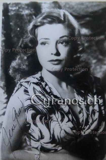 | Jane Greer (1924-2001) Dick Tracy 1945, Sindbad der Seefahrer 1947, Goldenes Gift 1947, Die rote Schlinge 1949, Im Schatten der Krone 1952, Der Sonne entgegen 1956, Revolte in der Unterwelt 1973, Boomer der Streuner 1979, Twin Peaks 1990 Original-signiertes Foto 3.5x5.5 inches (ca. Postkartenformat) (E III) Euro/CHF 14.- | |