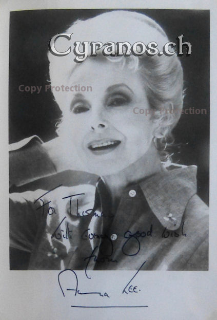 | Anna Lee (1913-2004) Ebb Tide 1932, King Solomon's Mines 1937, Das Haus der sieben Sünden 1940, Auf ewig und drei Tage 1943, Auch Henker sterben 1943, Ein Gespenst auf Freiersfüssen 1947, Das letzte Hurra 1958, Der Mann der Liberty Valance erschoss 1962, Was geschah wirklich mit Baby Jane? 1962, Der Preis 1963 Original-signiertes Foto 5x7 inches (Format A5) (D III) Euro/CHF 22.- | |