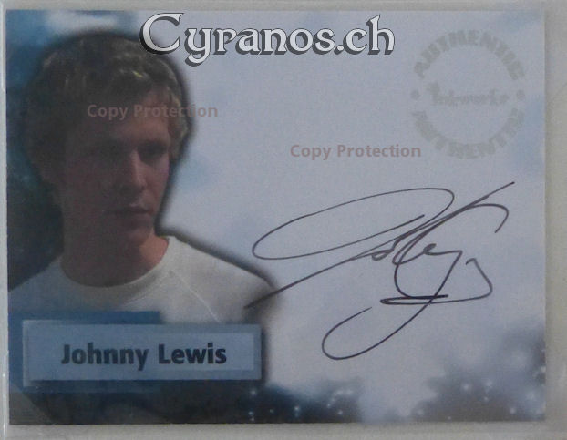 | Johnny Lewis (1983-2012) The Sausage Factory 2000, American Dreams 2003, Pretty Persuasion 2005, Teen Cop 2006, Aliens vs. Predator 2 2007, Ein tödlicher Anruf 2008, Felon 2008, Sons of Anarchy 2008, Lovely Molly 2011 Er wurde im Alter von 28 Jahren tot aufgefunden. Offenbar beging er vorab einen Mord an seine Vermieterin und starb bei der Flucht über den Balkon. Original-signiertes Foto (Format 6.5x9 cm, in Plastikhülle) (E II) Euro/CHF 35.- | |