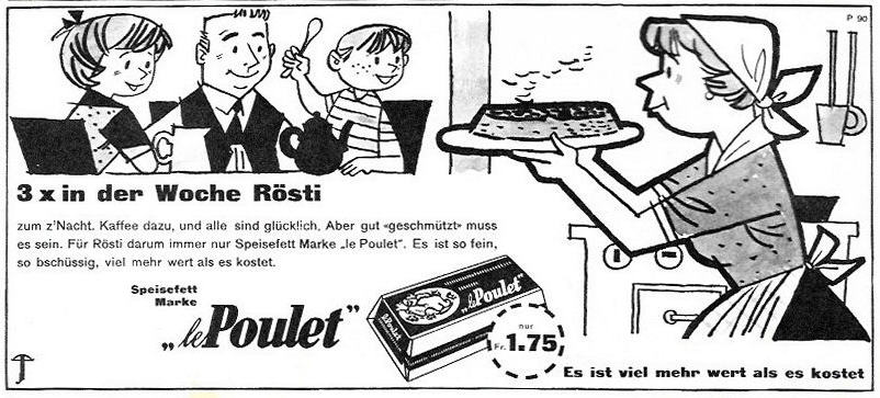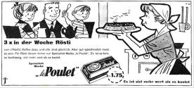 Werbung für die Marke "Le Poulet" aus den 50er und anfangs der 60er Jahren (in verschiedenen Zeitschriften publiziert) |
