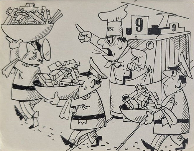 Restaurant "Zur rote Buech" |  Für die Zeitung "Zürich 2". Die Zeichnung wurde auch in der Zeitung "Die Tat" publiziert. |  Schweizer Illustrierte 1947 |  Zürcher Woche1956 |