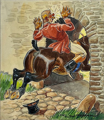 . Der Karikaturist Karl John wurde 1879 in Chrudim in Böhmen geboren. ![]() Nach seiner schulischen Ausbildung ging er nach Wien, wo er sein Zeichentalent an der „Wiener Kunstgewerbeschule“ erweiterte. Anschliessend ging er 1902 an die Akademie der Bildenen Künste in München, wo er die nächsten vier Jahre lebte. 1906 zog er nach Langenwang, wo er im Lindenhof seiner Mutter lebte. Er heiratete 1915 und das Paar baute später ein Haus in Schwöbing, wo sich Karl John auch ein Atelier einrichtete. Seine Bilder wurden an verschiedenen Ausstellungen gezeigt, so an der Herbstausstellung im Künstlerhaus in Wien 1932 und an der Grazer Jahresausstellung bildender Künstler 1933. Zu seinen Arbeiten gehörten Ölgemälde und Zeichnung aber auch Plakatentwürfe und Holzschnitte. Ein besonderes Steckenpferd von ihm waren Karikaturen, in denen er seinen Humor ausleben konnte. Karl John verstarb am 26. Juli 1962 in Langenwang. Links abgebildet ist eine Original-Zeichnung, die sich in meiner Sammlung befindet. ![]() |
