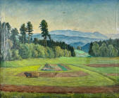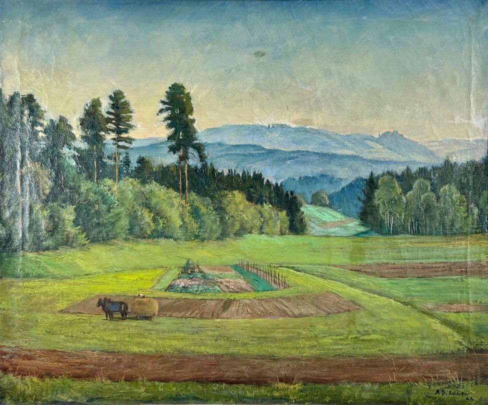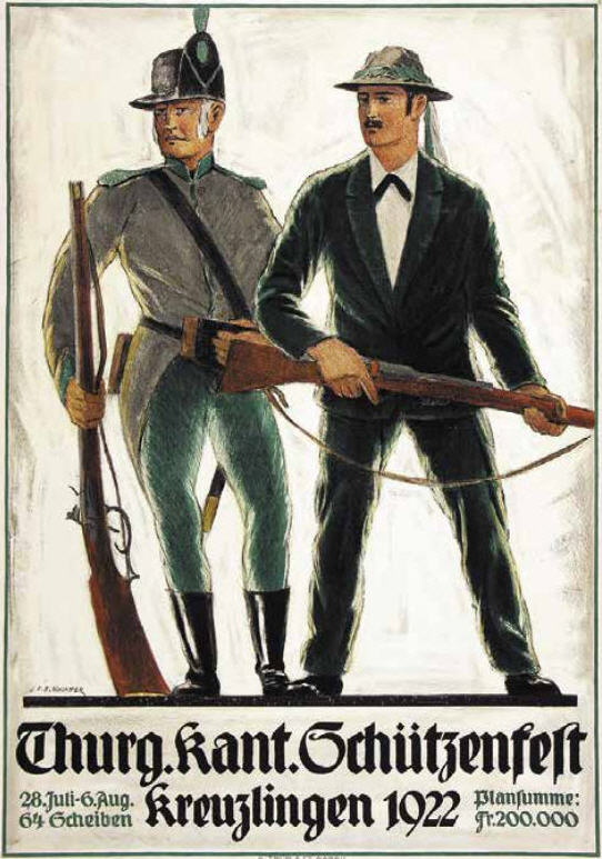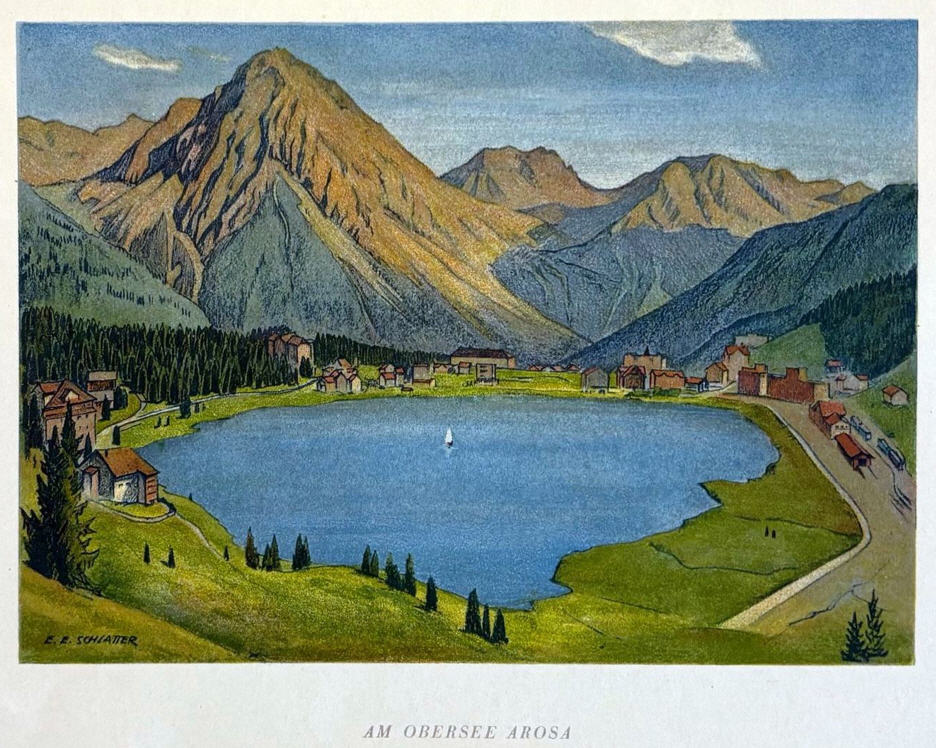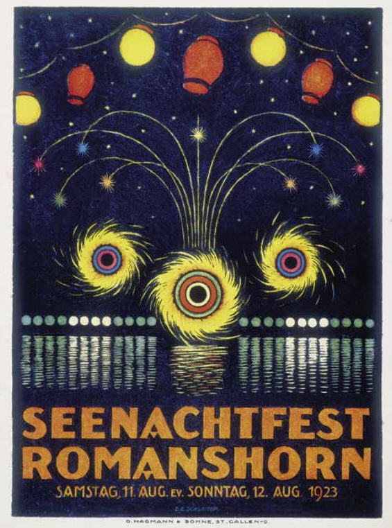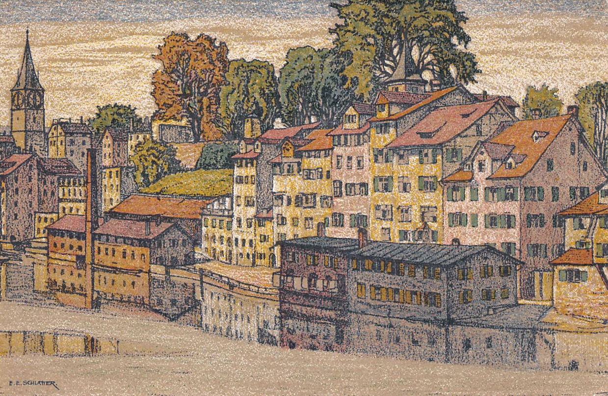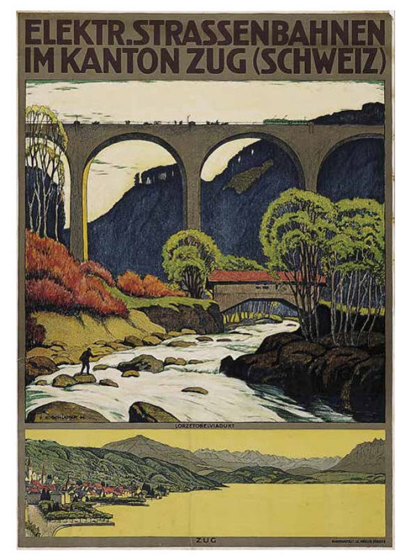 Der Graphiker, Maler und Lithograph Ernst Emil Schlatter wurde am 27. November 1883 in Zürich geboren. Nach seiner schulischen Ausbildung ging er 1898 in eine vierjährige Berufslehre als Lithograph beim Polygraphischen Institut in Zürich. Schliesslich ging er 1905 nach Stuttgart, wo er sich seinen Lebensunterhalt als Lithograph verdiente, es folgte ein weiteres Studium an der Kunstgewerbeschule in Stuttgart. In dieser Zeit entstanden zahlreiche Gemälde und Zeichnungen, die oftmals Landschaften zeigten. Mit seiner Rückkehr in die Schweiz 1907 machte er sich bald einen Namen als Graphiker mit seinen zahlreich gestalteten Plakaten. Hier machte sich auch seine Ausbildung als Lithograph bezahlt. Zwischendurch ging er 1910 nach München, um seine künstlerische Fähigkeiten zu erweitern. Dort fand er nicht nur die Liebe zu Zeichnungen und zur Kunstmalerei, die ihn die nächsten Jahre stets begleiten sollten, sondern er lernte dort auch seine zukünftige Frau Franziska Hermle kennen. 1912 ging er nach Zürich zurück und seine Plakatarbeiten waren nachhaltig von der vorangegangenen Ausbildung geprägt und erfreuten sich grosser Beliebtheit. Seine Erfolge im In- und Ausland führten schliessich zur Berufung an die Kunstgewerbeschule Zürich, wo er von 1917 bis 1920 als Lehrer tätig war. Zu Ernst Emil Schlatters zahlreichen Plakaten gehören „RhB Rhätische Bahn“ (11), „Birsigtalbahn – Basel“ (11), „Mittel-Thurgau-Bahn“ (12), „Konstanz am Bodensee“ (12), „Insel-Restaurant Bauschänzli“ (13), „Kaiser-Strand-Hotel Lochau-Bregenz“ (13), „Elektr. Strassenbahnen im Kanton Zug“ (14), „Braunwald-Bahn“ (14), „Seetalbahn“ (17), „Tonhalle Zürich“ (17), „Aviation Nationale Suisse“ (19), Wahlplakat „Stimmt der Freisinnigen Liste VI“ (19), „Zuoz“ (21), „Thurg. Kant. Schützenfest Kreuzlingen“ (22), „Seenachtsfest Romanshorn“ (23), „Gewerbe-Industrie und Landwirtschaftsausstellung Sulgen“ (24), „Internationales Schaufliegen Romanshorn“ (24), „Rival“ (25), „Schweizerische Süd-Ost-Bahn“ (25), „Der Kreis – Kunstausstellung Lindau“ (26), „Nordostschweizerisches Schwingfest Rapperswil“ (27), Wahlplakat „Wirtschaftsgesetz Nein“ (28), Wahlplakat „Strassen-Verkehrs-Gesetz Ja“ (29),Wahlplakat „Gemeinde-Bestimmungsrecht“ (29), „21. Thurg. Kantonal Turnfest Kreuzlingen“ (30), Wahlplakat „Jagdgesetz Nein“ (30), „Thurg. Kantonal. Gesangsfest Kreuzlingen“ (33), „Pferderennen Arosa“ (34), „Schwimmbad Walzenhausen“ (35), „Arosa“ (36), „Für das Alter“ (39), „Appenzellerland“ (40), Wahlplakat „Wählt Liste 4 Doktor Bircher“ (43), „63. Thurgauisches Kantonal-Gesangsfest Romanshorn“ (47). Neben seiner Tätigkeit als Graphiker begann er 1920, als freischaffender Künstler zu wirken. Er liess sich in Uttwil am Bodensee nieder und 1925 errichtete er sein eigenes Wohn- und Atelierhaus „Moosacker“. Zwischen 1922 und 1924 erschienen insgesamt 17 Karikaturen von ihm in der Satirezeitschrift „Nebelspalter“. Sein künstlerisches Werk wurde abgerundet mit Lithographien von Thurgauer Landschaften, aber auch weitere Landschaften wie Südrhodesion sowie Porträts, Karikaturen und Mappenwerke. Zudem schuf er zahlreiche Motive für Postkarten, die seine Arbeiten in die Welt hinaustrugen. Ernst Emil Schlatter übte verschiedene Funktionen aus, so war er in den Jahren 1919 bis 1924 und 1953 bis 1954 der Präsident der Zürcher Künstlervereinigung und Mitglied der Künstlervereinigung „Der Kreis“ von 1925 bis 1937. Er engagierte sich zudem beim Thurgauer Heimatschutz und bei der Gesellschaft für Literatur und Musik in Romanshorn. Der vielseitige Künstler verstarb am 13. September 1954 im Alter von 70 Jahren in Uttwil. Weitere Informationen und Bildmaterial findet man auf der Homepage „Ernst Emil Schlatter“. Desweiteren werden zahlreiche seiner Plakate auf der Homepage des „Plakatarchivs“ gezeigt. |