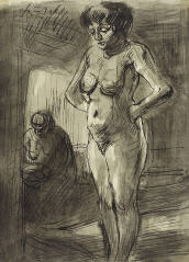 Schwestern an Tuberkulose. In den kommenden Jahren lebte er bei seiner Mutter, die als Journalisten und Übersetzerin arbeitete. Nach seiner schulischen Ausbildung schloss er eine Ausbildung als Grafiker ab und nahm Zeichenunterricht, unter anderem bei E. O. Leuenberger. Mit dem Ausbruch des 1. Weltkrieges wurde der junge Johann Robert Schürch zum Grenzschutz eingezogen. Er zog 1916 nach Genf, wo er kurzzeitig die Ecole des Beaux-Arts besuchte und er nahm bei E. Gilliard Zeichenunterricht. Gleichzeitig war er bei Ferdinand Hodler als Ateliergehilfe tätig. Zwei Jahre später verstarb Ferdinand Hodler und Johann Robert Schürch zeichnete seinen Unterstützer auf dem Totenbett. In dem Unternehmer Kurt Sponagel fand er seinen wichtigsten Mentor. 1921 ging er Dank eines Stipendiums der Armin-Honegger-Stiftung nach Florenz, wo er während rund sechs Monaten die grossen Künstler kopierte, um seine Kunstfertigkeit zu erweitern. Im gleichen Jahr arbeitete er bis 1932 in einem kleinen Chalet in Monti della Trinita oberhalb von Locarno. In jenen Jahren schuf er mehr oder weniger zurückgezogen von der Umwelt zahlreiche Tuschezeichnungen und Aquarelle, die ihn zu seinem eigenen künstlerischen Stil führten. Bei einem fatalen Autounfall im Jahre 1933 verletzte er sich schwer und litt den Rest seines Lebens an den Folgen. Als er 1935 Erica Leutwyler (1915-2015) kennenlernte, wurde sie seine Partnerin. Die beiden hielten sich im Umfeld zu den Künstlern in Monte Verita auf. 1939 verstarb seine Mutter und Johann Robert Schürch wurde im gleichen Jahr zum Grenzdienst eingezogen. Er wurde jedoch schon bald wegen Bronchitis wieder entlassen. Ein Jahr später wiederholte sich die grosse Tragödie innerhalb der Familie, als er an offener Tuberkulose erkrankte. Am 14. Mai 1941 verstarb ebenfalls an dieser heimtückischen Krankheit im Alter von nur 45 Jahren. In seinen unzähligen Zeichnungen hielt er Menschen in ihren Lebenssituationen fest, oftmals auch Menschen, die am Rande der Gesellschaft lebten (Trinker, Bettler, Dirnen, Behinderte) und ein einfaches hartes Leben führten. Desweiteren schuf er auch viele Landschaftszeichnungen sowie zahlreiche Selbstbildnisse. Der Nachlass von Johann Robert Schürch befindet sich bei der Erica Ebinger-Leutwyler Stiftung. |