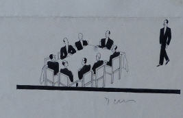 21![]() evtl. Ladislaus Kmoch | 22![]() Wer hat Informationen zum Illustrator Paul Peter Heydgen? Obenstehende Zeichnung erschien 1934 im Nebelspalter. | 23![]() Wer hat Angaben zum Illustrator der Werbezeichnung für die Druckerei "Gebr. Klingenberg, Detmold". | 24![]() Wer hat Angaben zum österreichischen Karikaturisten Alexander Wiesinger (verst. 1956)? | 25![]() Wer hat Angaben zum Cartoonisten Napo ? |