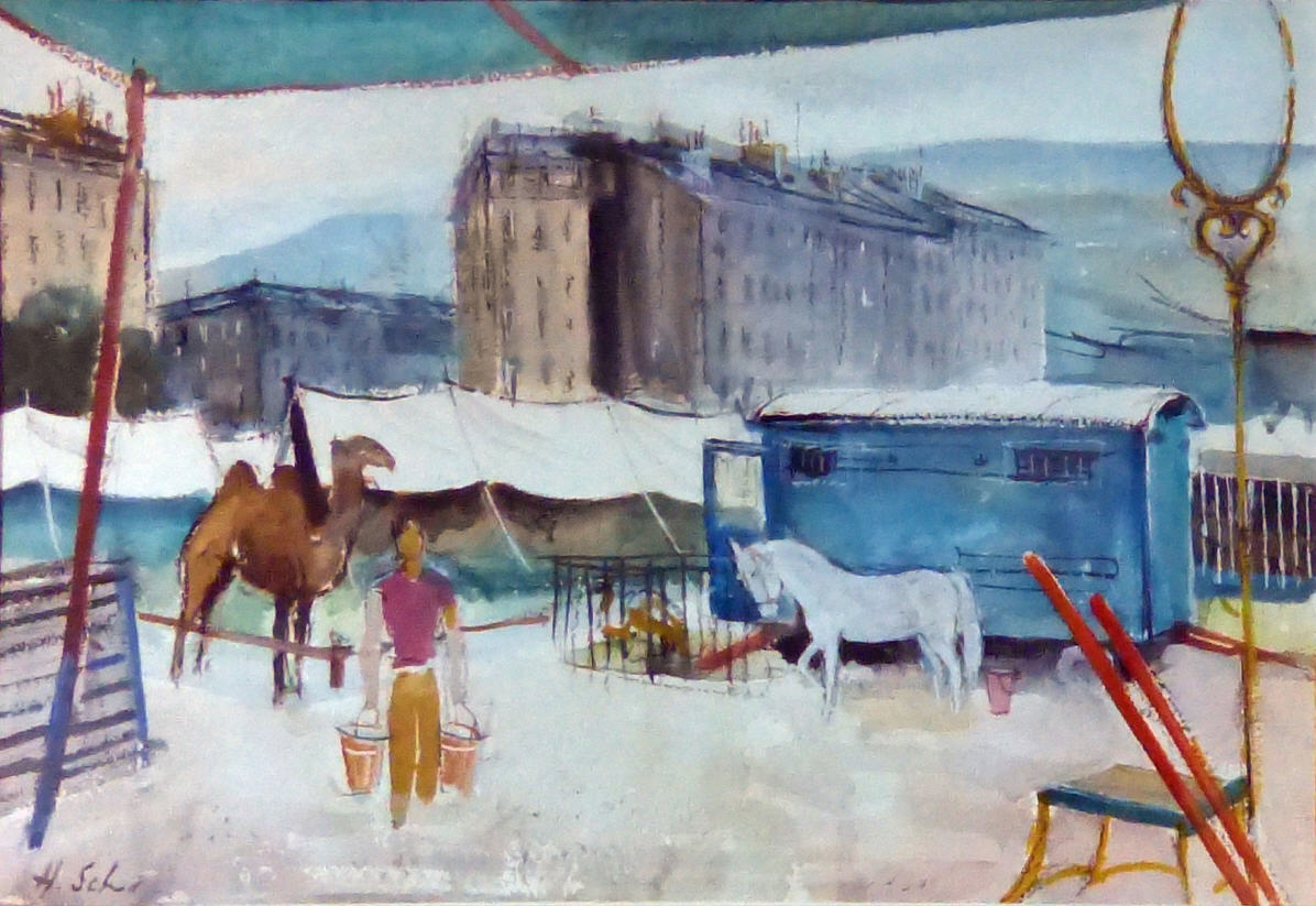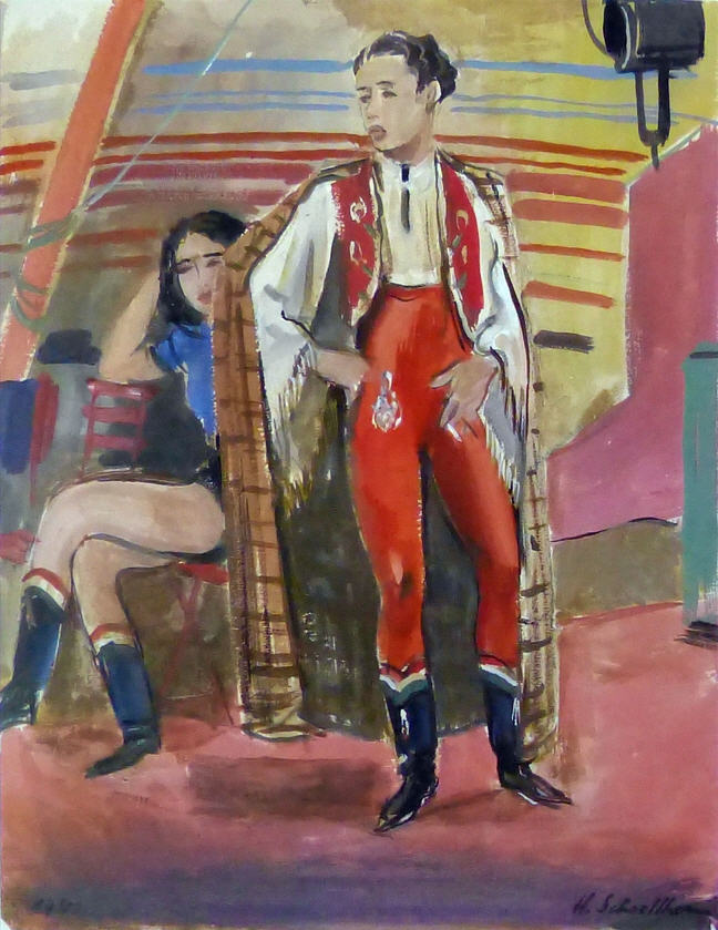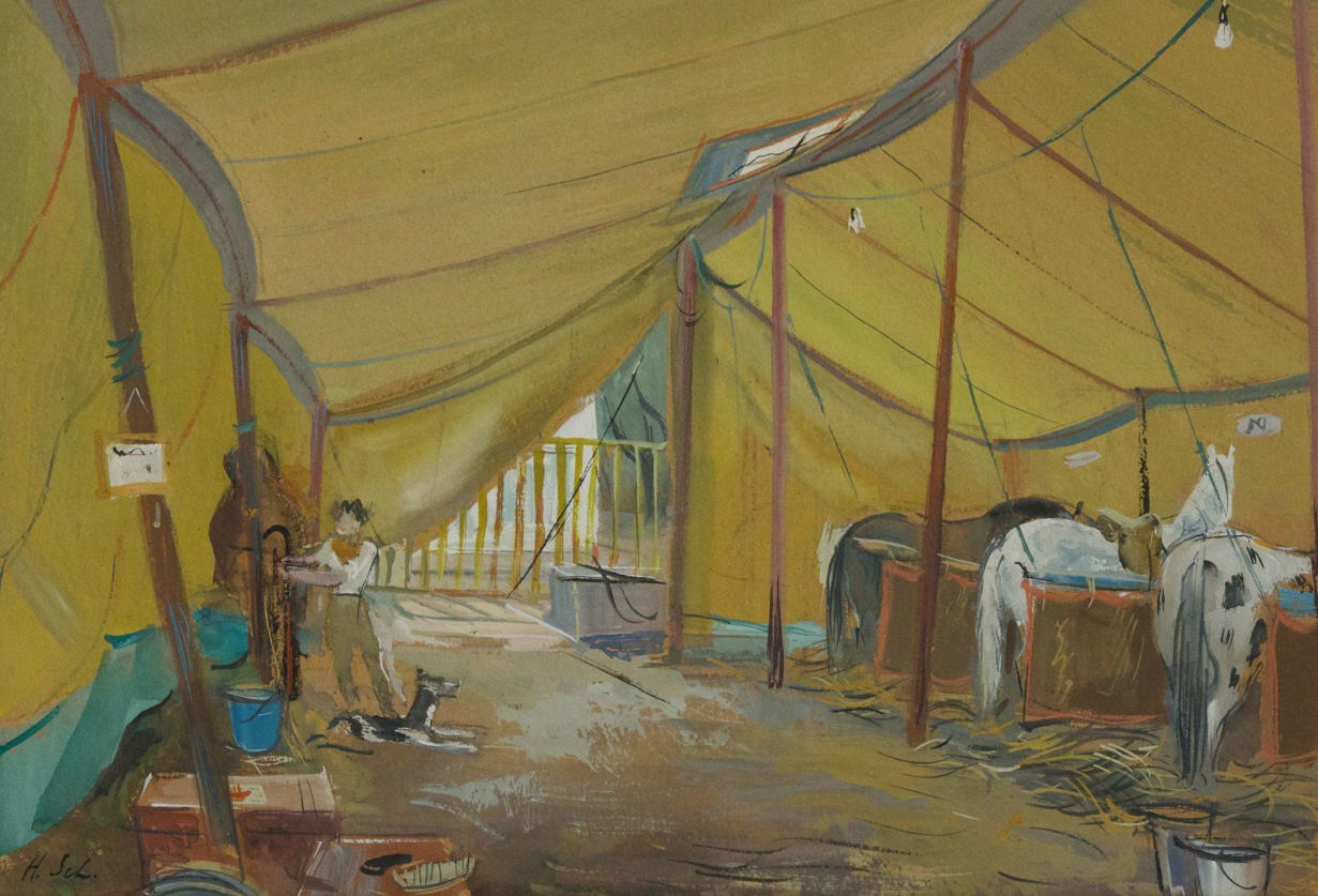 .Gemälde Im Laufe der Jahre schuf Hans Schoellhorn zahlreiche Gemälde, die ihn zu einem der bekanntesten Winterthurer Künstler machten. Während viele der damaligen Künstler aus Winterthur nach ihrem Tod mehr oder weniger in Vergessenheit gerieten, gehören Hans Schoellhorn und Rudolf Zender auch heute noch zu jenen Künstlern, deren Werke nach wie vor im vierstelligen Bereich verkauft werden. Viele seiner Malmotive zeigen die faszinierende Welt des Zirkus und seine Arbeiten gewähren auch Einblicke hinter die Kulissen. Desweiteren verarbeitete er seine auf Reisen gewonnenen Eindrücke in seinen Gemälden, die er meist in südlichen Gefilden Europas aber auch in Nordafrika fand. Abgerundet wird die nachstehende Galerie mit Porträts, Akten und Alltagsszenen.